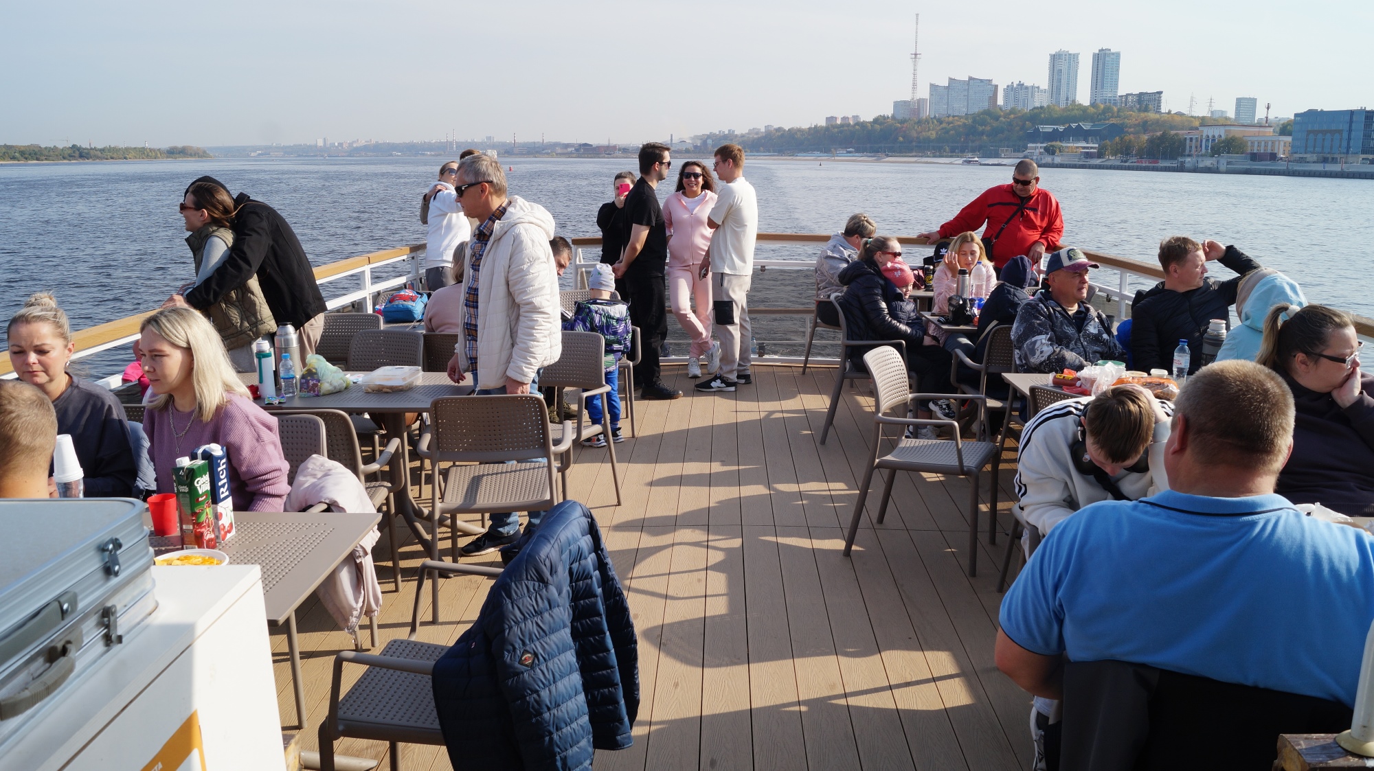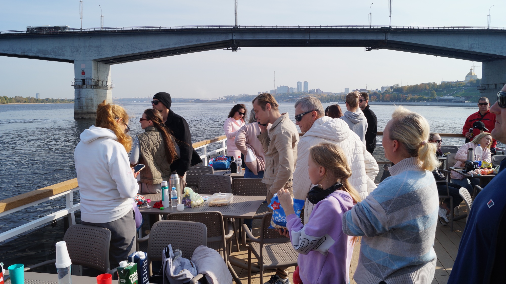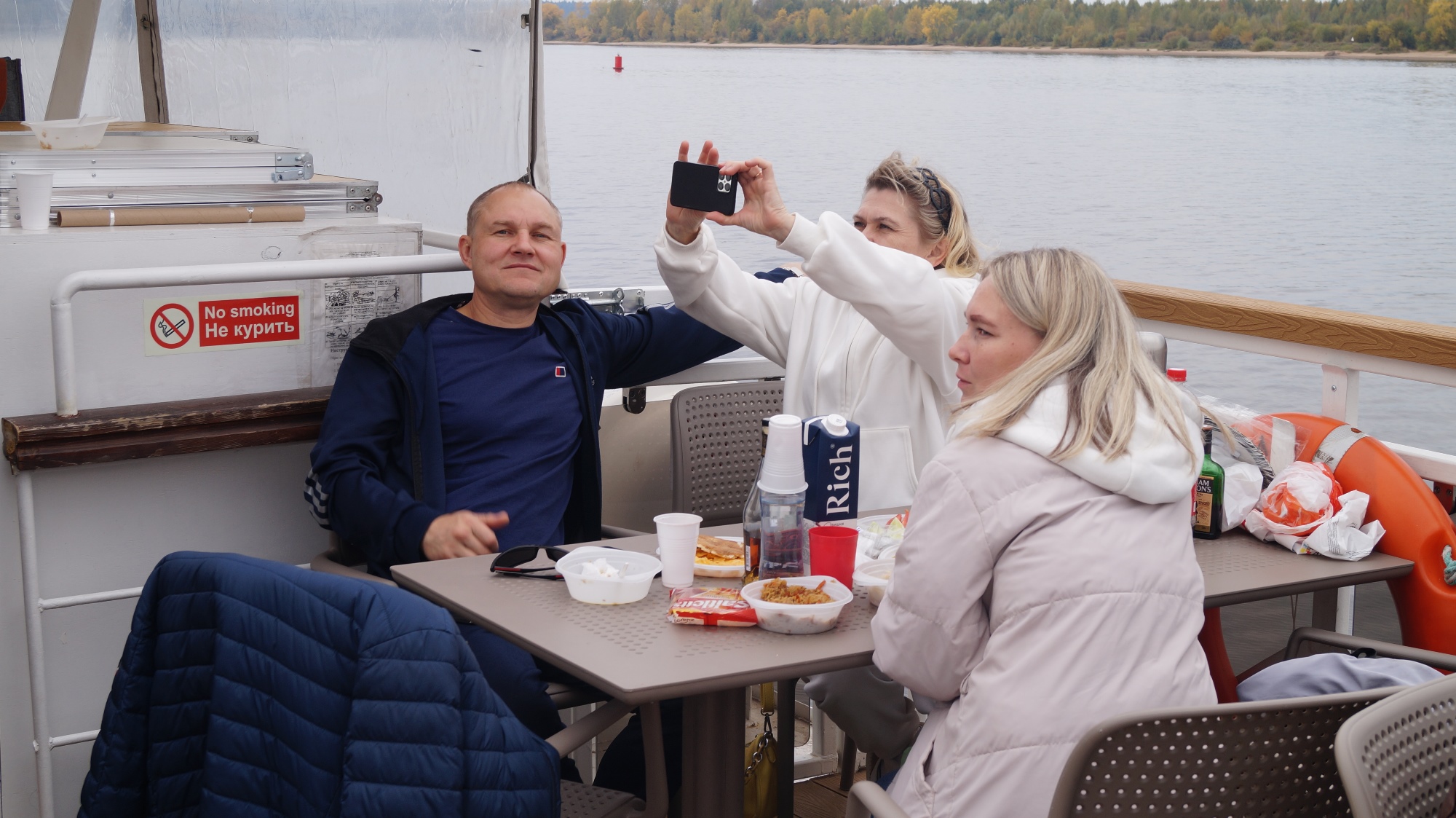 На борту участников ждала насыщенная программа. Вкусный обед, приготовленный лучшими поварами, сменился чаепитием с ароматной пиццей, которое стало отличным поводом для непринужденных бесед. Но главным хитом стала экскурсионная программа: опытный гид погрузил всех в богатую историю Перми и Пермского края. Участники узнали малоизвестные факты о поселениях вокруг города, ключевых событиях региона и даже взглянули на город Пермь с совершенно новой перспективы — с борта теплохода, скользящего по водной глади.