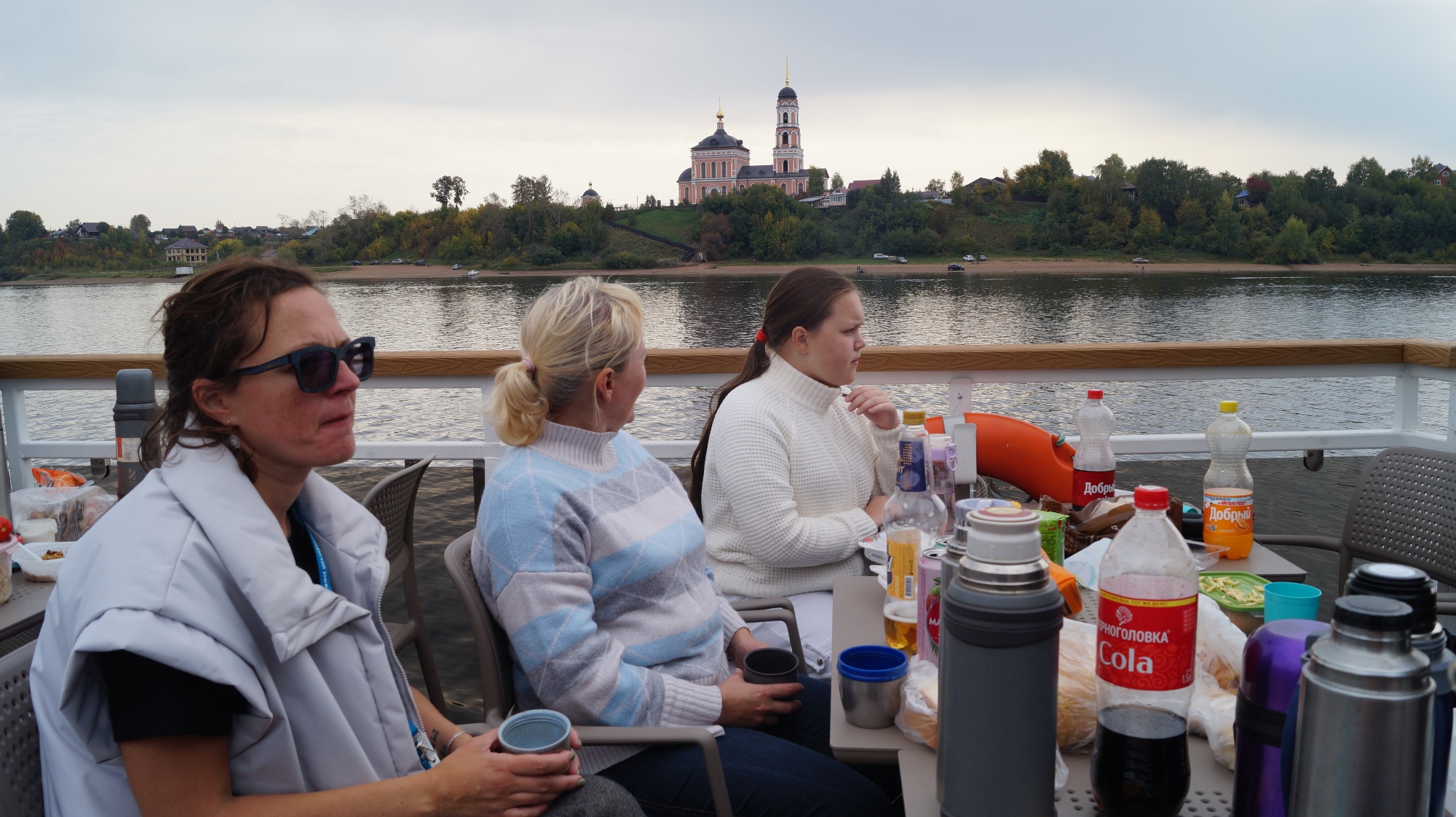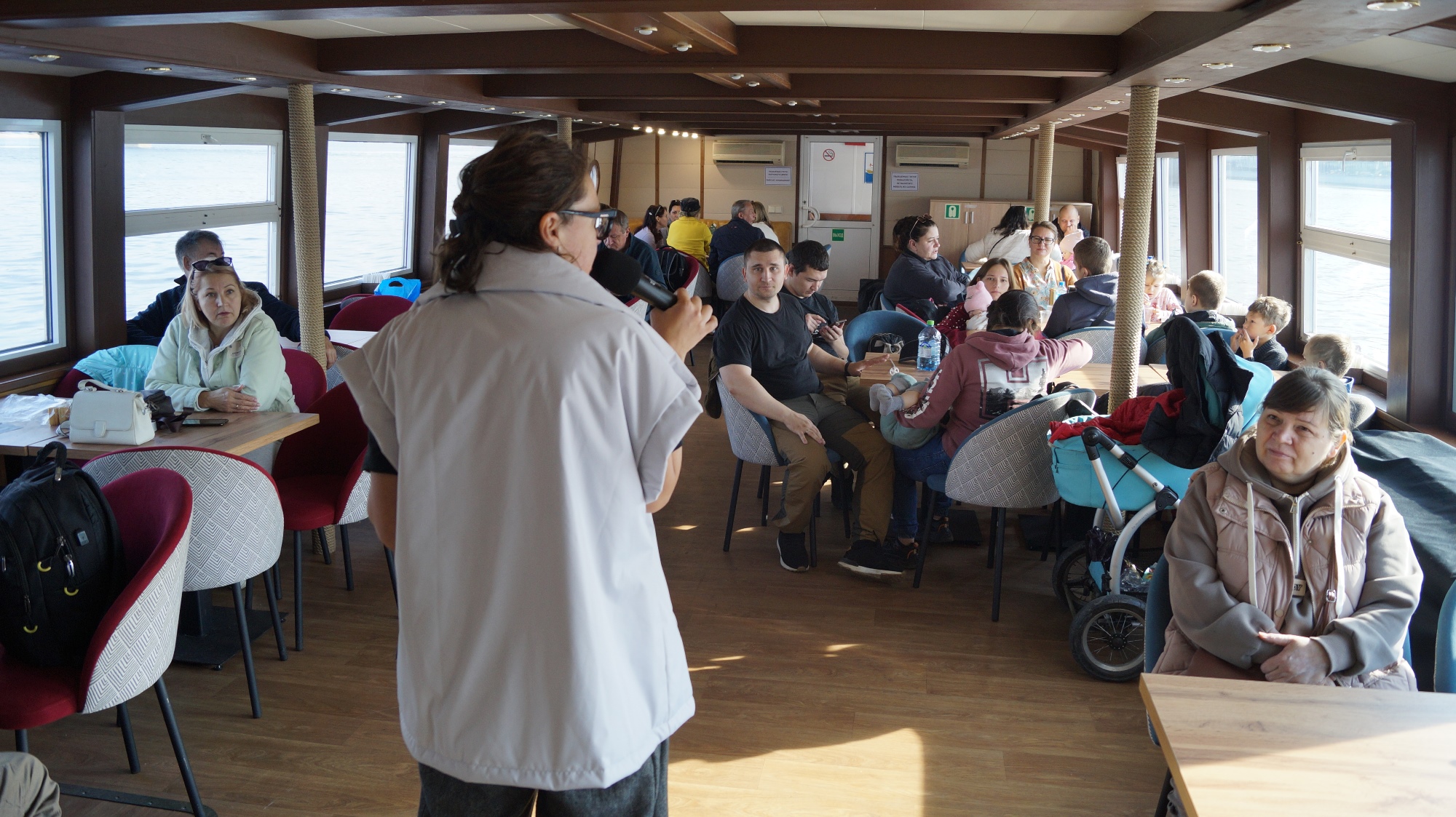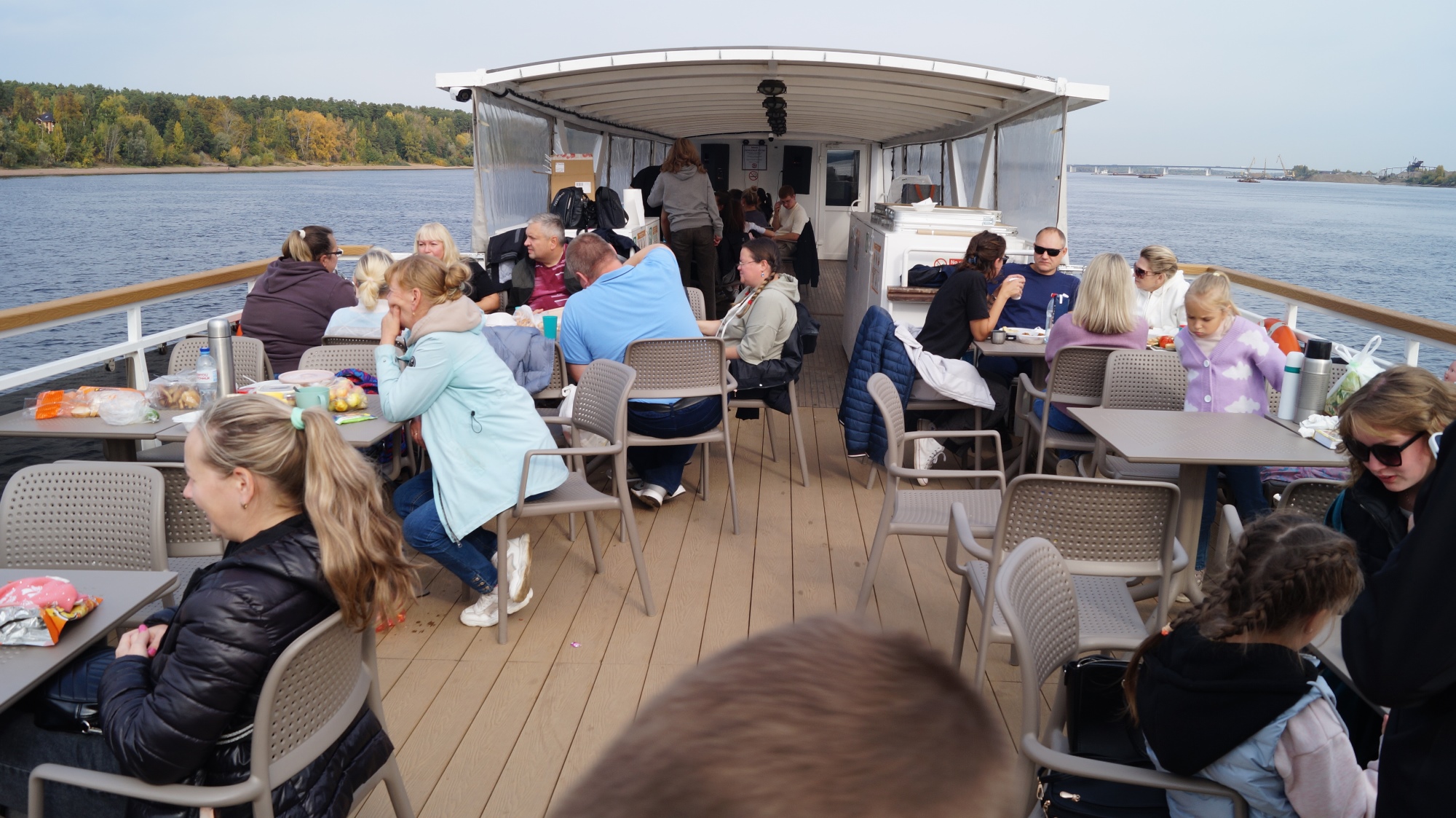 На борту участников ждала насыщенная программа. Вкусный обед, приготовленный лучшими поварами, сменился чаепитием с ароматной пиццей, которое стало отличным поводом для непринужденных бесед. Но главным хитом стала экскурсионная программа: опытный гид погрузил всех в богатую историю Перми и Пермского края. Участники узнали малоизвестные факты о поселениях вокруг города, ключевых событиях региона и даже взглянули на город Пермь с совершенно новой перспективы — с борта теплохода, скользящего по водной глади.