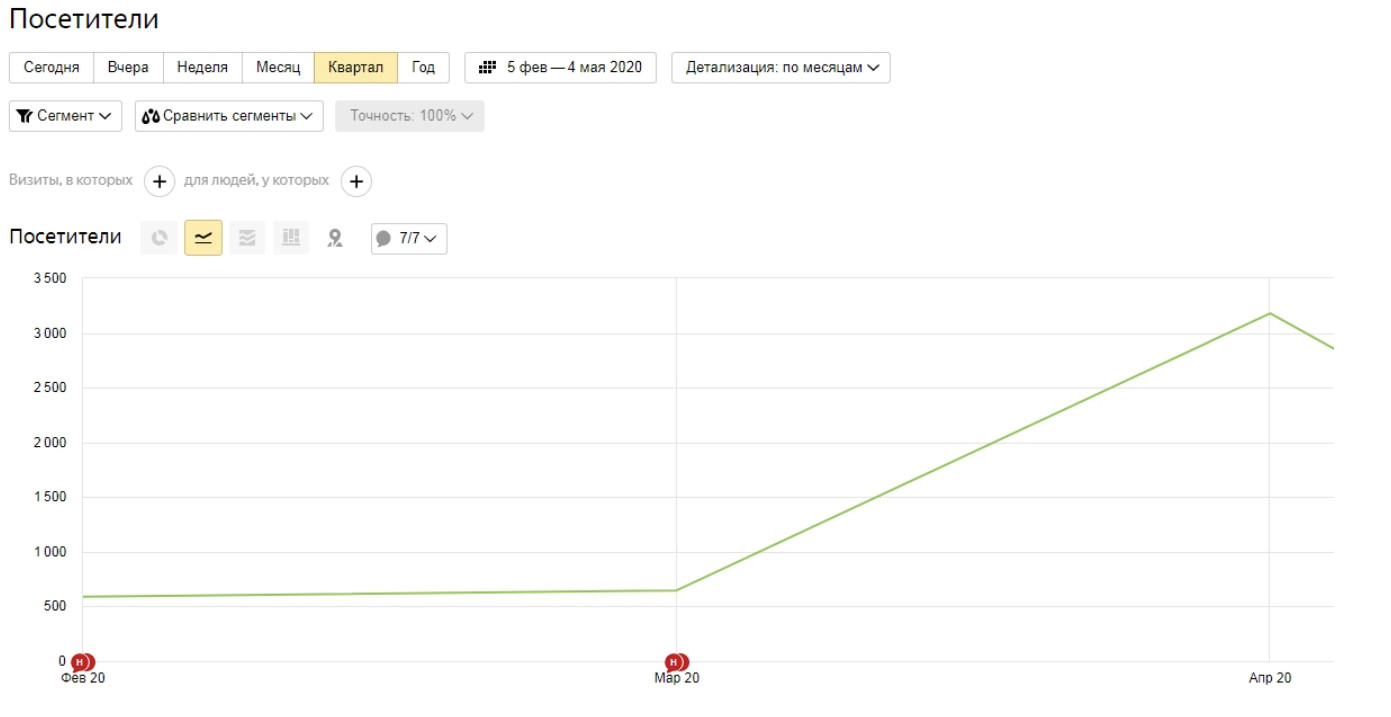 - Трафик вырос в 40 раз: с 500 до 3500 посетителей за первые два месяца, а затем до 20 000+ визитов в месяц.