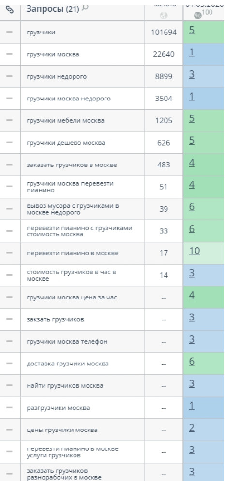 - вывести сайт в ТОП-1 по запросу «грузчики Москва» и сотням региональных комбинаций;
