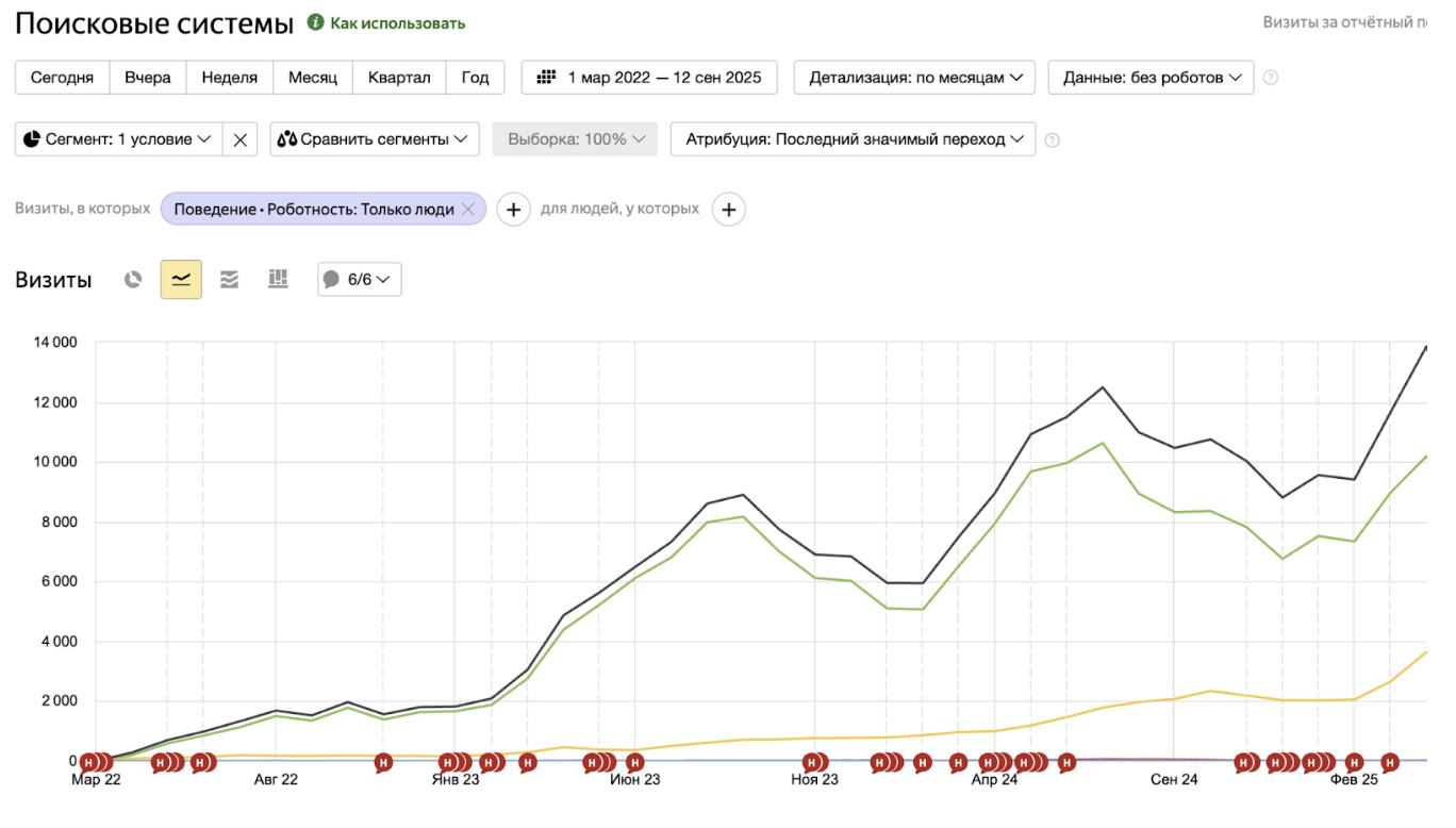- Рост органического трафика с 0 до 14 000+ посетителей/мес.