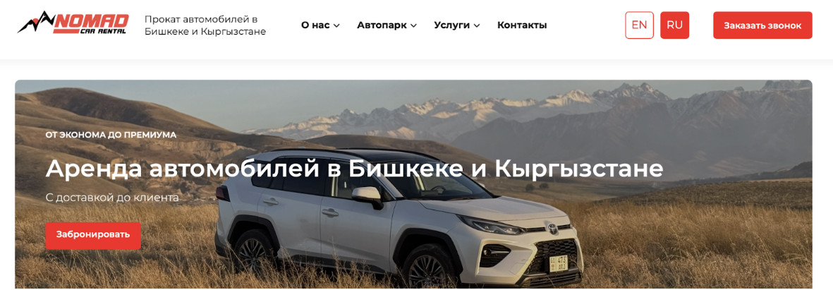 Кейс: SEO-продвижение сайта проката авто NOMAD CAR + ТОП-10 в Кыргызстане за год