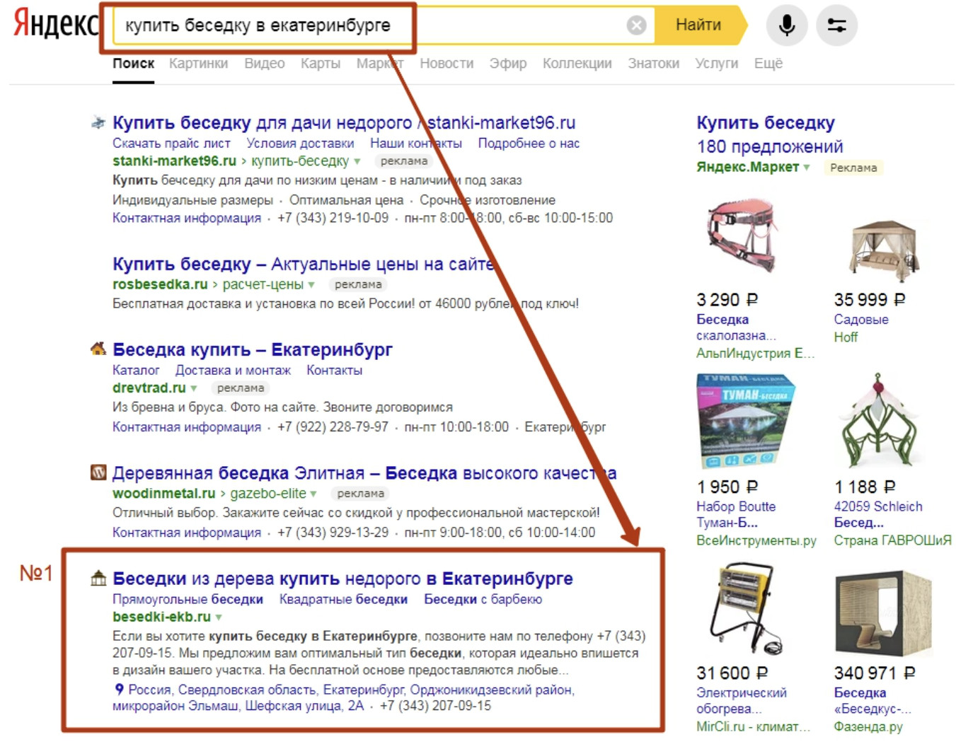SEO-продвижение компании по изготовлению беседок на заказ в Екатеринбурге. Сайт вышел в ТОП-5 по ключевым запросам / Онегин Эксперт