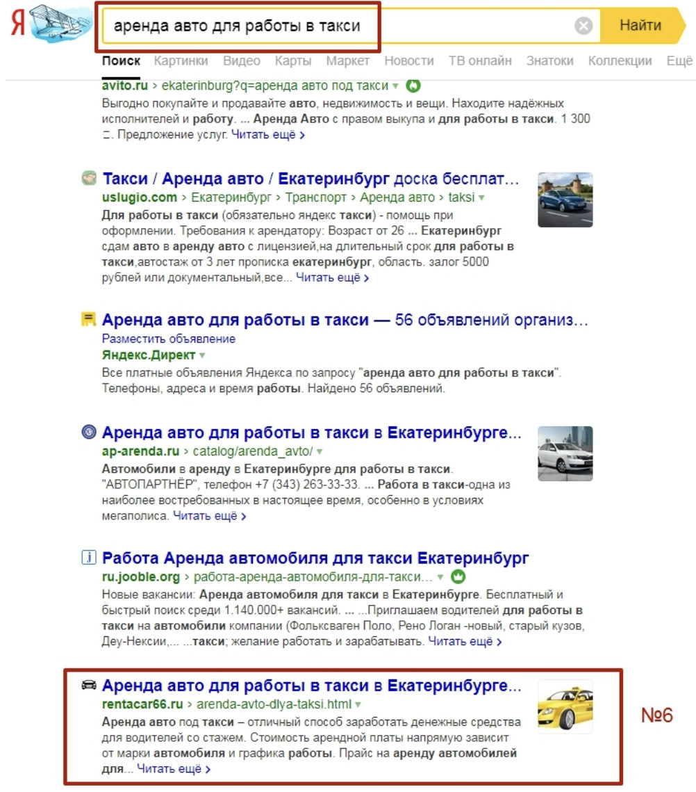 - Сайт не появлялся в ТОП даже по локальным запросам вроде «аренда авто Екатеринбург» или «машина для такси в аренду».