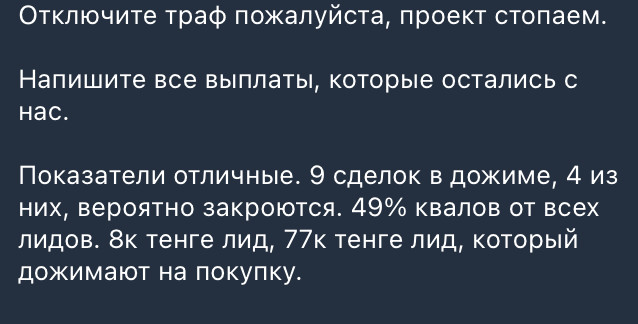Результат первых дней запуска: 📌 При расходе $80 уже было 7+ потенциальных сделок. Средние траты: В один день нам пришло такое сообщение: ✔️ Одновременный тест нескольких инструментов помогает быстро найти рабочие связки. Результат превзошёл ожидания клиента: заявки пришли уже в первые дни, стоимость оказалась ниже прогнозной, а количество потенциальных сделок на $80 бюджета показало высокий уровень качества трафика. Если вы застройщик или агентство недвижимости и хотите запуск с понятными цифрами уже через неделю — пишите: А больше кейсов и практических материалов вы найдёте в моём канале 👉 Welcome Leads в Telegram.