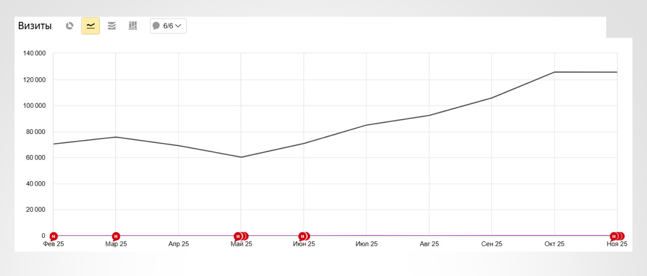 - Рост общего органического трафика на 44% (+55 120 визитов).
