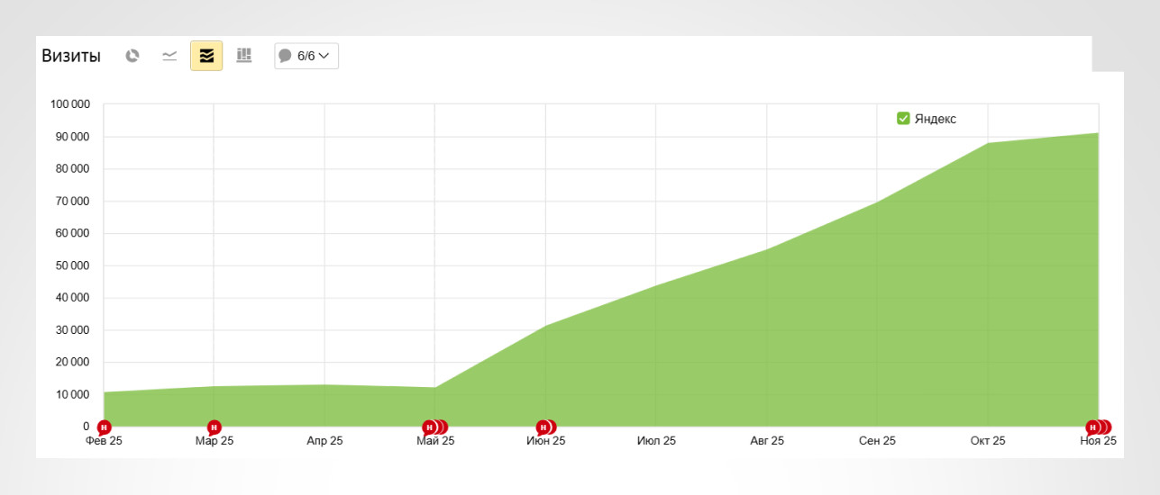 В результате за время продвижения удалось добиться значимого роста SEO-показателей: