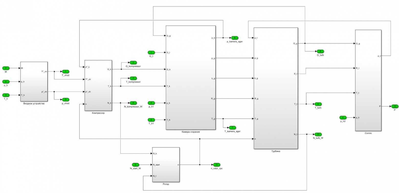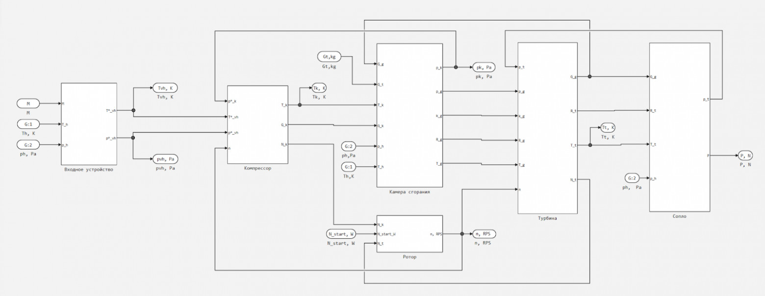 В этом проекте специалисты УЗГА решили не мелочиться и замоделировать работу целого газотурбинного двигателя, но чтобы не раскрывать коммерческой тайны, взяли в публичном доступе описание математической модели абстрактного ГТД (тоже реализованную в среде Simulink, что оказалось очень кстати для сравнения) и воспроизвести аналогичную модель в среде Engee.
