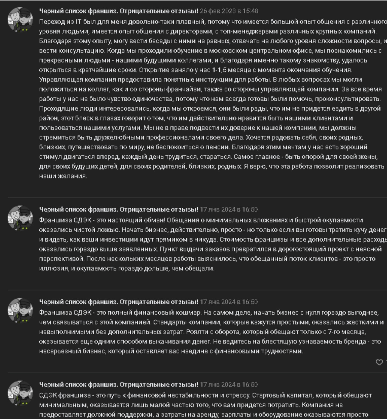 Отдельно люди пишут, что доход формируется не только за счет ПВЗ, но и за счет привлечения собственных клиентов на доставку. Те, кто изначально заходил в СДЭК с пониманием, что это продажный бизнес, а не просто окно выдачи, чаще оценивают франшизу нейтрально или положительно.