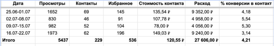 Клиент обратился к нам 25 июня. До этого он самостоятельно размещал объявления на Авито, но результат не устраивал:
