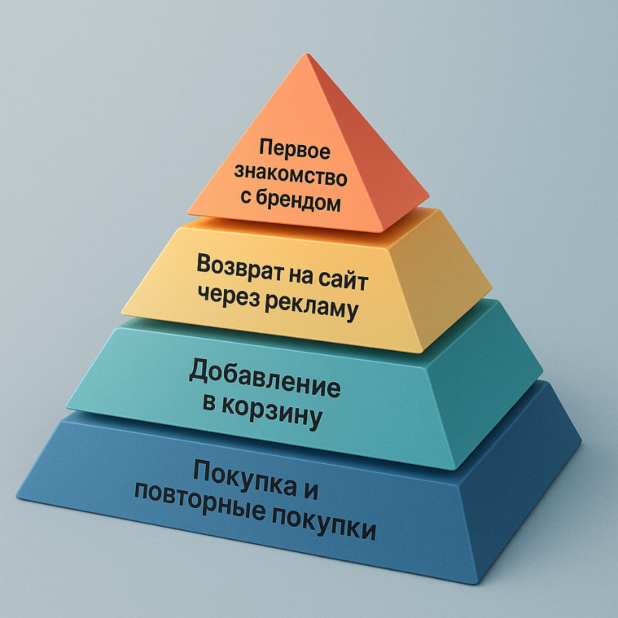 Так формируется полноценная воронка: от первого знакомства с брендом до повторных продаж, увеличивая конверсию и LTV.