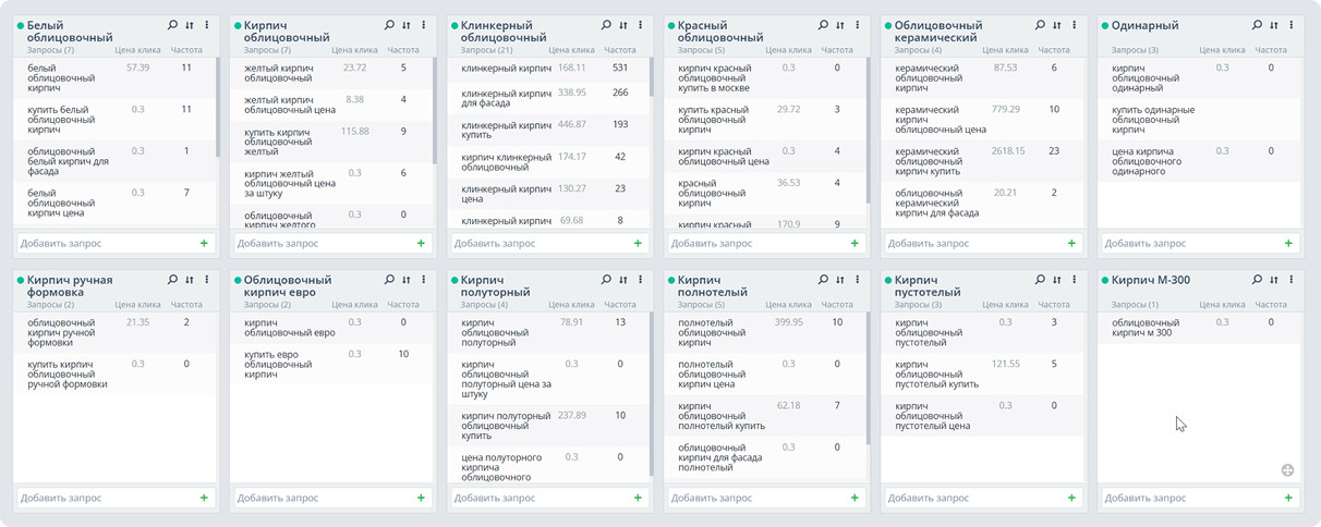 - Высокая конкуренция — строительная тематика в Москве насыщена высокочастотными запросами.