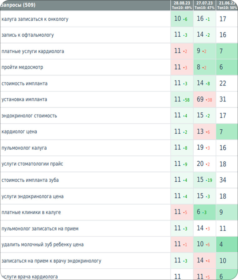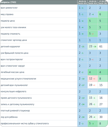 положительную динамику по позициям. В период 2023–2024 годов семантическое ядро