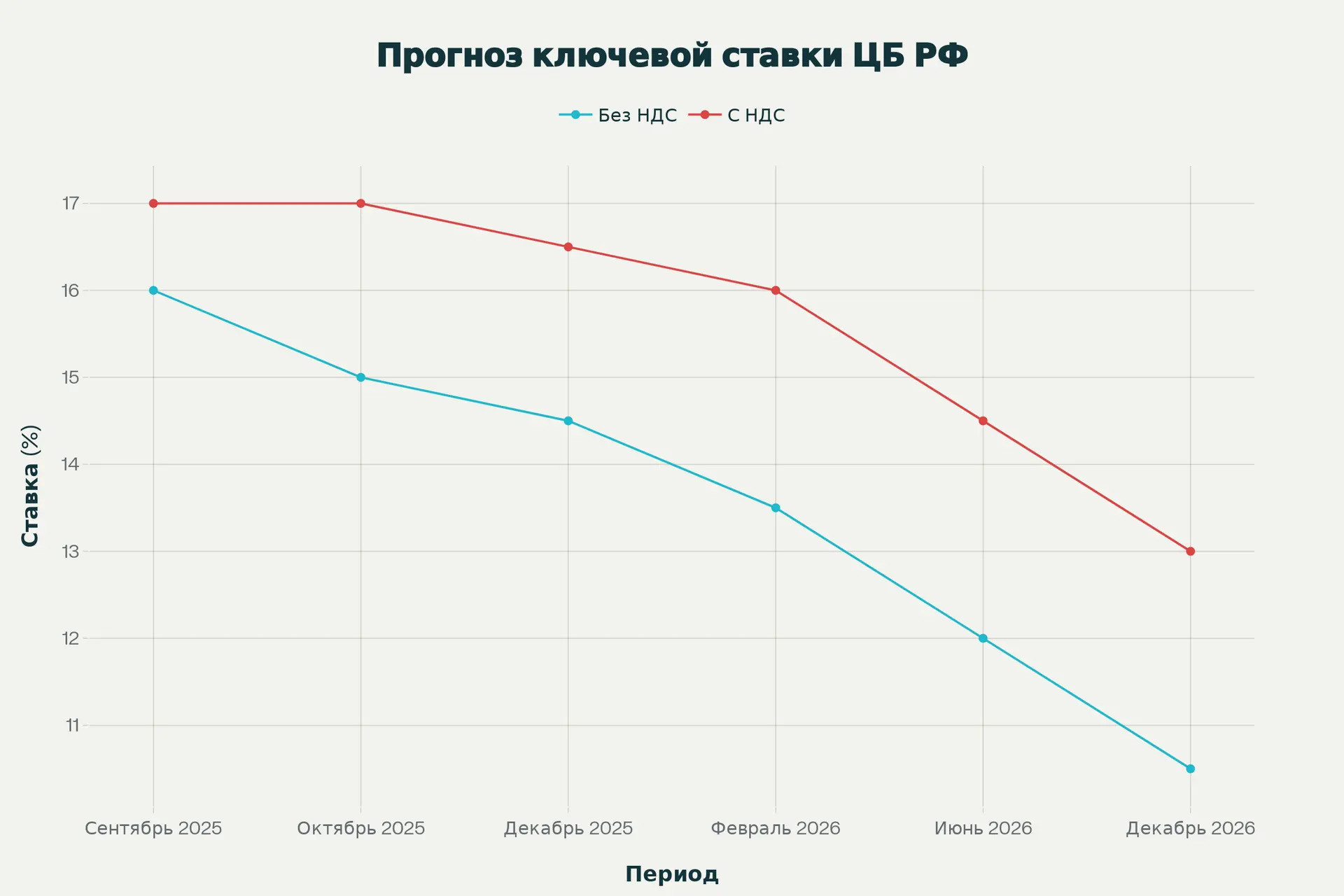 Каждый процент повышения НДС исторически добавляет примерно столько же к розничным ценам. Значит, в 2026 году инфляция получит дополнительные 1,5-2% только от налогового фактора. Это серьезно осложнит задачу ЦБ по возвращению инфляции к целевым 4%🏦 ЦБ уже сигнализирует о возможных паузах в снижении ключевой ставки. Если сейчас рынок надеется на снижение с нынешних 17% до 15-16% к концу 2025 года, то повышение НДС может заставить регулятор держать ставку на уровне 16-17% дольше, чем ожидалось ранее