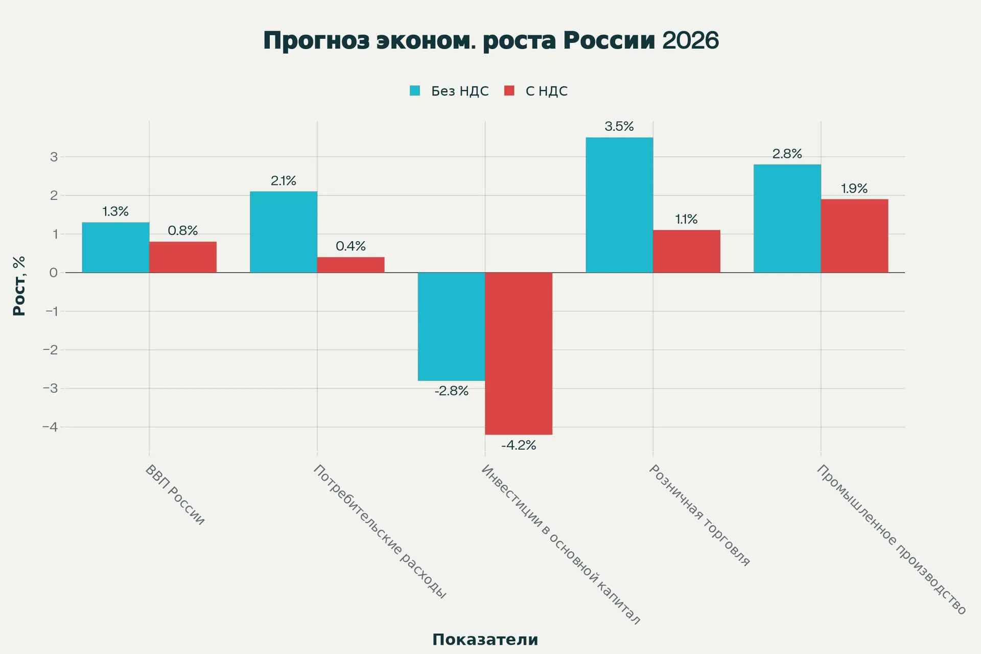 Повышение НДС на 2% — это серьезный удар по российской экономике, которая и так «переохлаждается». Минэкономразвития уже понизило прогноз роста ВВП на 2025 год с 2,5% до 1%, а на 2026 год — с 2,4% до 1,3%. С учетом налогового шока эти цифры могут оказаться еще скромнее🛍 По сути, каждая покупка товаров и услуг станет дороже примерно на 1,67%. При том, что льготная ставка 10% сохраняется для продуктов питания, лекарств и детских товаров, удар придется по всему остальному — от одежды и электроники до услуг и строительства