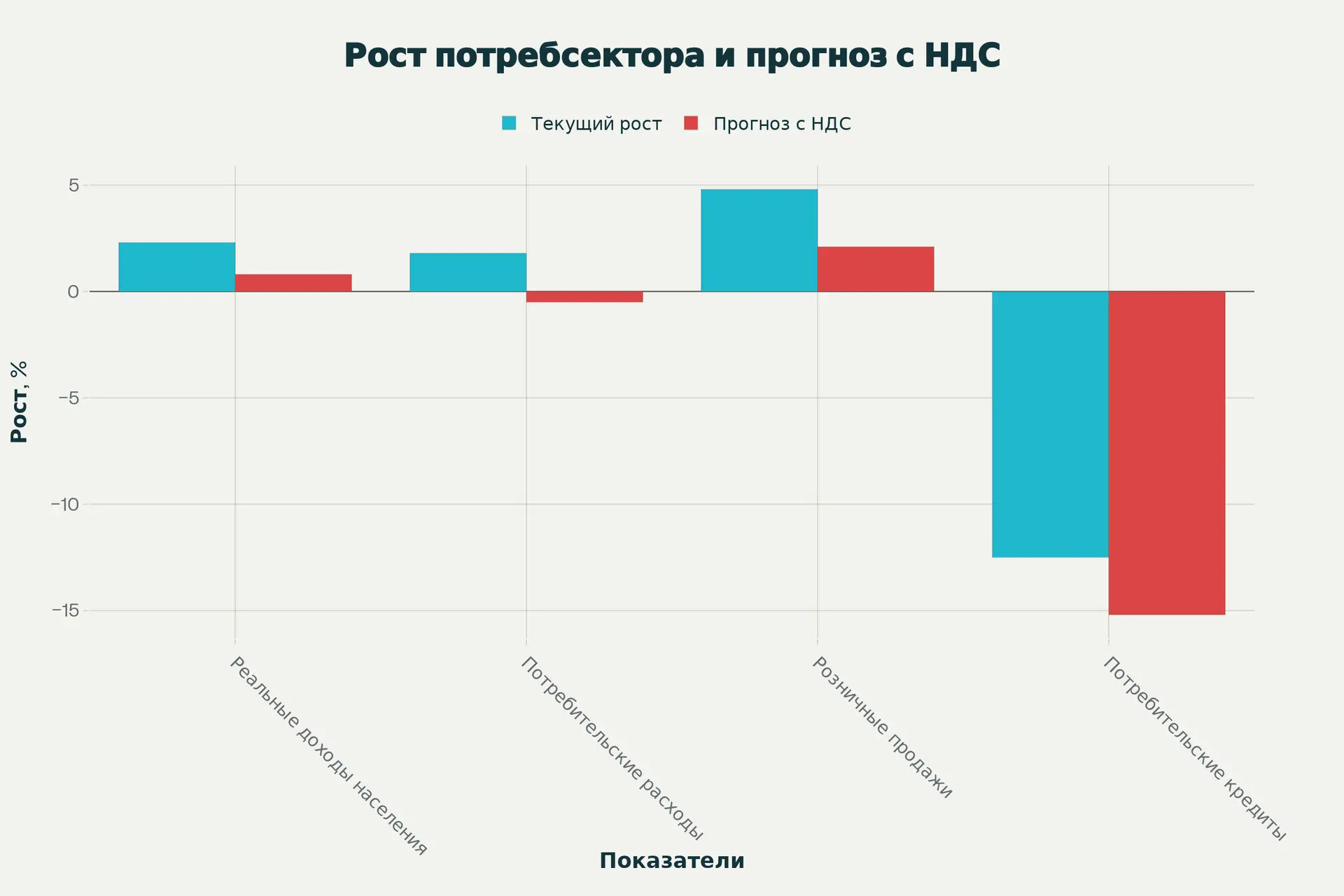 Повышение НДС создаст цепную реакцию по всей экономике. Даже те товары, которые формально остаются под льготной ставкой 10% (продукты, лекарства, детские товары), подорожают косвенно — через рост цен на сырье, логистику, оборудование