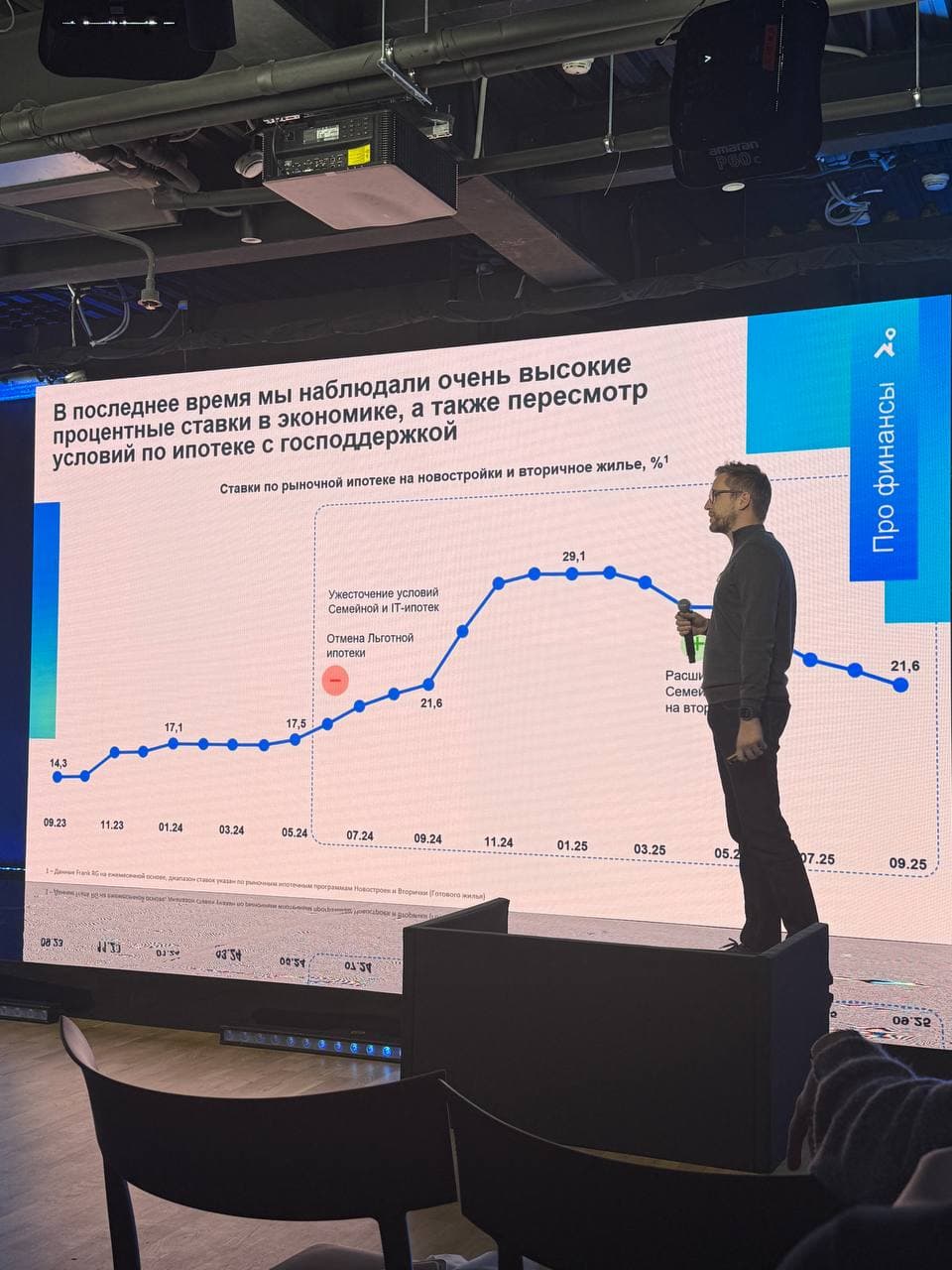 Компания генерирует значительный свободный денежный поток — 3,7 млрд ₽ за 9 месяцев, что позволяет объявить специальные дивиденды 104 ₽ на акцию. Но следующий дивиденд ожидается лишь через полгода и вполовину меньше, что всё равно даст хорошую доходность📊 Операционные показатели. Компания делает ставку на технологические инновации — онлайн-подписание договоров, оценку недвижимости с данными Росреестра, поиск через дополненную реальность. Однако эффективность этих инвестиций пока не совсем ясна В транзакционном бизнесе наблюдается стагнация. Выручка почти не растёт, что напрямую связано с ситуацией на ипотечном рынке. Несмотря на некоторое оживление в третьем квартале, высокие ставки продолжают сдерживать спрос. Это слабое место Циана, но доля в выручке у него минимальна, так что не является проблемой Расходы на персонал выросли на 13% за 9 месяцев. маркетинговые расходы на 19% в квартале, но пока это всё меньше темпов роста выручки, проблем также нет 📈 Перспективы Руководство улучшило прогноз — теперь ожидает рост выручки на 16-17% с рентабельностью по EBITDA 22-23%. Это уверенный сигнал, особенно на фоне объявления о дивидендах Компания завершила корпоративную реструктуризацию — позитивный шаг. В отчёте также упоминаются разовые расходы на это в размере 179 млн ₽, так что реальная прибыль могла быть ещё выше. Рынок новостроек демонстрирует рост — +17% в 3 квартале, что напрямую помогает Циану. Однако вторичное жильё растёт скромнее — всего 1%, ограничивая потенциал транзакционного бизнеса. Компания остается сильно зависимой от конъюнктуры рынка новостроек. В итоге всё ещё позитивно смотрим на акции Циана — благодаря сильному росту основного бизнеса и улучшению маржинальности. Компания, к тому же, платит хорошие дивиденды. Если ключевая ставка продолжит снижаться — темпы роста могут даже ускориться День инвестора Циан посетил СЕО социальной сети БАЗАР Владилав Никонов