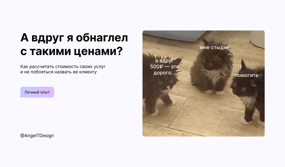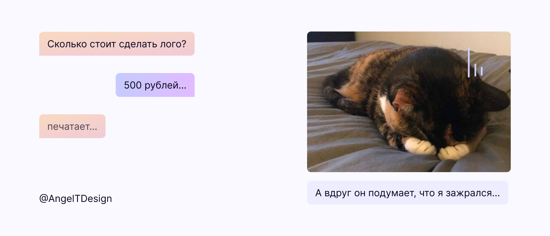 «А вдруг я зажрался?» Важно не только озвучить цену клиенту, но и самостоятельно ее принять. Многие ребята сталкиваются с огромным роем мыслей, что их работа не может стоить таких денег. А ведь речь идет не о миллионах. — А вдруг это слишком дорого? — А если он скажет, что я обнаглел с такими ценами? — А если... — А вдруг... ••• Шесть лет назад, когда я только начинала, у меня были знакомые, которые считали, что я слишком дорого беру. Мне говорили: «Ангелина, 1000₽ за рисунок — дорого. Кто у тебя купит?». Уже тогда мне было непонятно: если работа адекватная и на нее потрачено время, почему я не найду клиента, которого устроит мой прайс? Спойлер: я нашла. Еще один спойлер: я поняла, что 1000₽ — это очень небольшая сумма за работу, но даже так я встречала от людей возгласы о том, что я обнаглела В чем мораль: выставляйте цены в соответствии со своими ощущениями. Любая работа стоит денег, а хорошая работа — хороших денег. В первую очередь, это важно, чтобы не выгореть. Во вторую, чтобы не демпинговать рынок. А вот если проблема не в окружении, которое давит на психику своим «Бери меньше, кто на такое согласится?», то подход немного отличается. Вы все еще должны четко осознавать, что любой труд должен быть оплачен. Дизайн, лепка из глины или шитье — это такая же работа, как починка холодильников или бухгалтерские услуги.