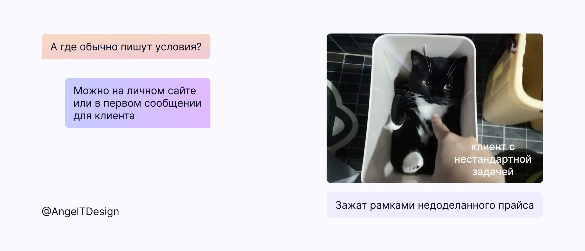 Моя любимая фраза, которую можно показывать вместо сеанса с психологом: Что я рекомендую в включить в прайс, чтобы клиенту было проще понять, за что он платит: 1. Сумму за услугу. Например, логотип у меня стоит Х рублей