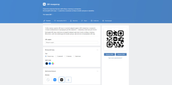 1. Генератор QR‑кодов ВКонтакте