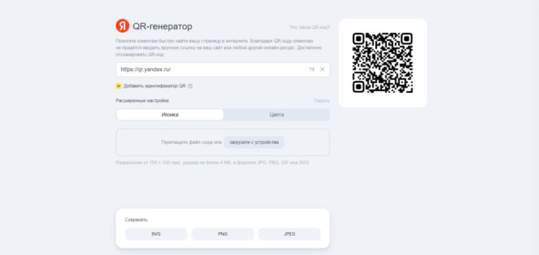 2. Генератор QR‑кодов от Яндекса