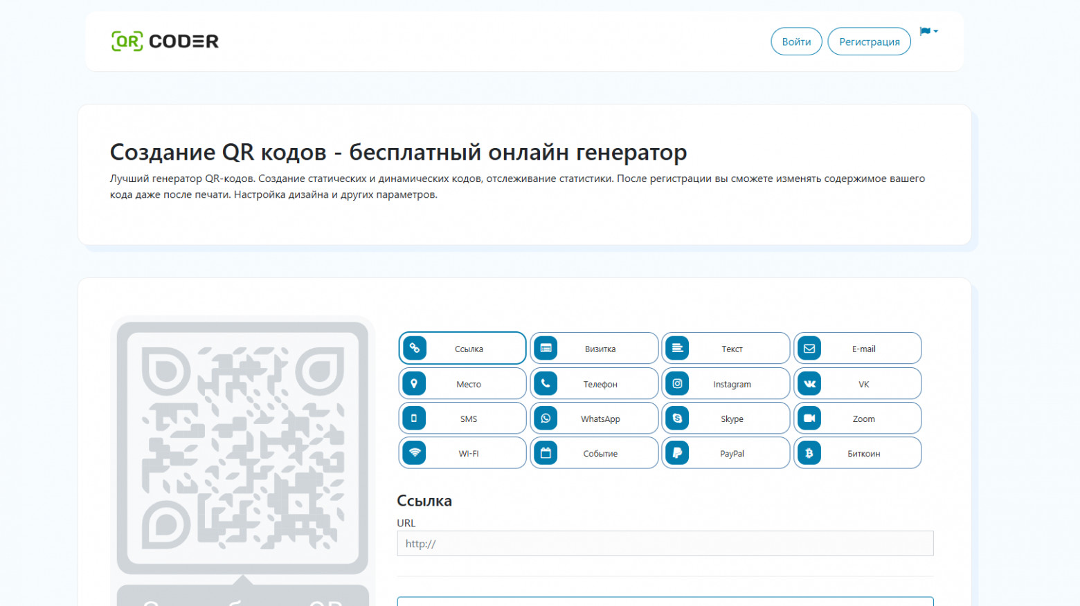 Ссылка: Онлайн генератор QR кодов