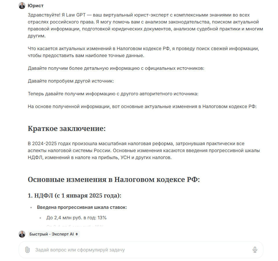 Представьте: проверка договора на 30 страниц, поиск судебной практики, расшифровка переговоров. Раньше на это уходили часы и дни. Теперь те же задачи можно выполнить за 20–30 минут с качеством опытного специалиста.