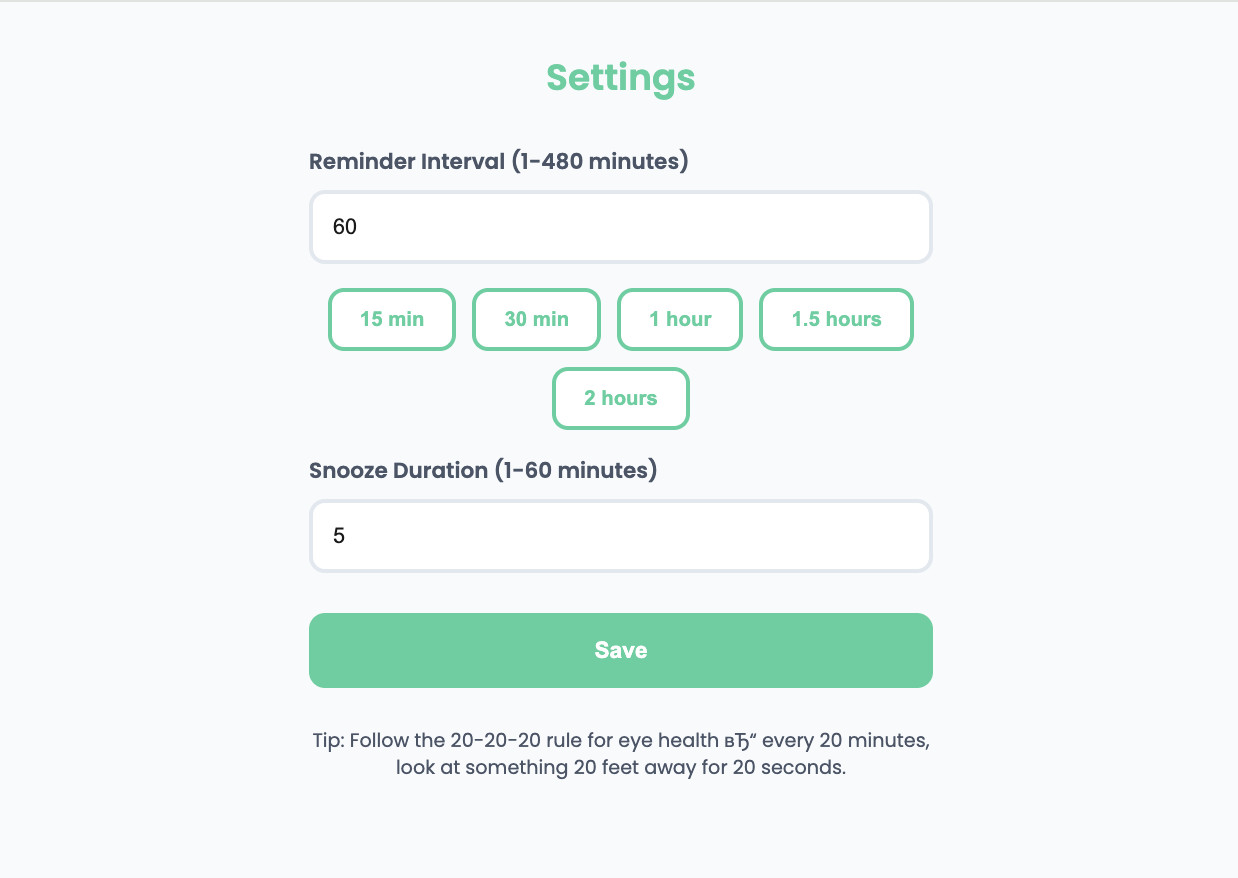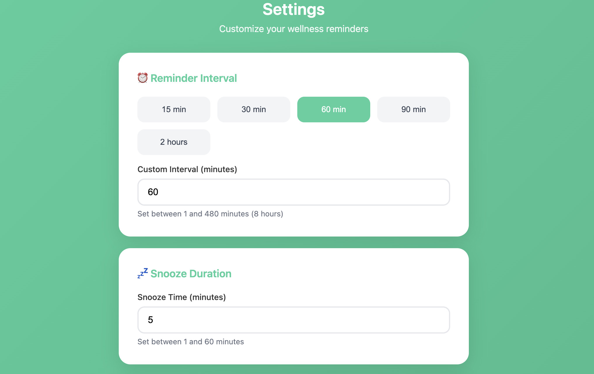 ⏰ Настраиваемый интервал — от 1 до 480 минут (8 часов)