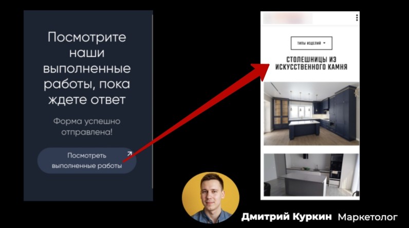 Пример квиз-лендинга под кухонные столешницы: Вся настройка и запуск заняли 3 дня. А результат — 88 заявок, 6 договоров и еще c 10-к потенциальных сделок в работе. Очень неплохой результат. Особенно для ниши, где средний чек за столешницу 100к+. А цикл сделки (от первого разговора с клиентом до договора) — 2 месяца. Все договора в этой статистике пришлись на 3 месяц. Созрели 🍎 Когда человек ищет исполнителя на услуги изготовления столешницы для кухни, его волнует следующие вопросы в порядке важности: Так вот квиз — идеально закрывает первые 2 потребности/вопроса. Он не размусоливает «на тему». Четко: нужна столешница для кухни? — Мы производим такие столешницы. Хотите узнать стоимость? — Ответьте на несколько вопросов. Все. Точка. Поэтому в связке с рекламой он работает лучше других вариантов сайтов. Человек ничего о вас не знает, не доверят и вообще «только цену хотел узнать» Естественный минус. Когда на сайте ничего толком о вас не написано. Люди ничего о вас и не узнают, перед тем, как оставляют заявку. Поэтому продать им сложнее. И у кого-то это не получается, отсюда бывает негатив к такому инструменту. Но это все лечится 🏥😷 Вот вам рецептик. Когда человек оставляет заявку в квизе, можно (нужно!) автоматически отправить его в одно из путешествий (🌴) на выбор: Вуаля. Пока клиент ждет звонка менеджера, он не бегает по сайтам конкурентов, а потихоньку узнает о вас больше и сам себе отвечает на 3 вопрос: «Почему он должен довериться именно вам». Еще один лайфхак 💡 Когда пришла новая заявка, отправьте клиенту перед звонком в мессенджер визитку со своей фотографией и/или мини-презентацию «О компании». Не все, конечно, но часть клиентов-снежинок (❄️) точно растают от вашего тепла (☀️) Создать такой квиз-лендинг можно на популярных конструкторах Tilda или Marquiz. Совсем-совсем без знаний программирования. В Яндекс Директе подойдет любой формат рекламы. Для новичков, конечно же, лучше выбрать мастер-кампаний. Тут главное понять принцип работы. О чем и весь текст выше) А дальше это уже технические детали. Тогда напишите мне кодовое слово " ТРАФИК" в личные сообщения в телеграм: Получив ваше сообщение, я задам пару вопросов и договоримся о встрече, где разберем конкретно ваш случай и как привлечь клиентов именно в вашей ситуации. Плюс подскажу примерный бюджет на ваш город и сколько заявок на кухонные столешницы можно привлечь в ближайший месяц. А что я за чел такой, можно узнать подробнее в моем ТГ-канале: Буду рад вашей подписке :) Так же оставляйте реакции и задавайте вопросы в комментариях или личных сообщениях!