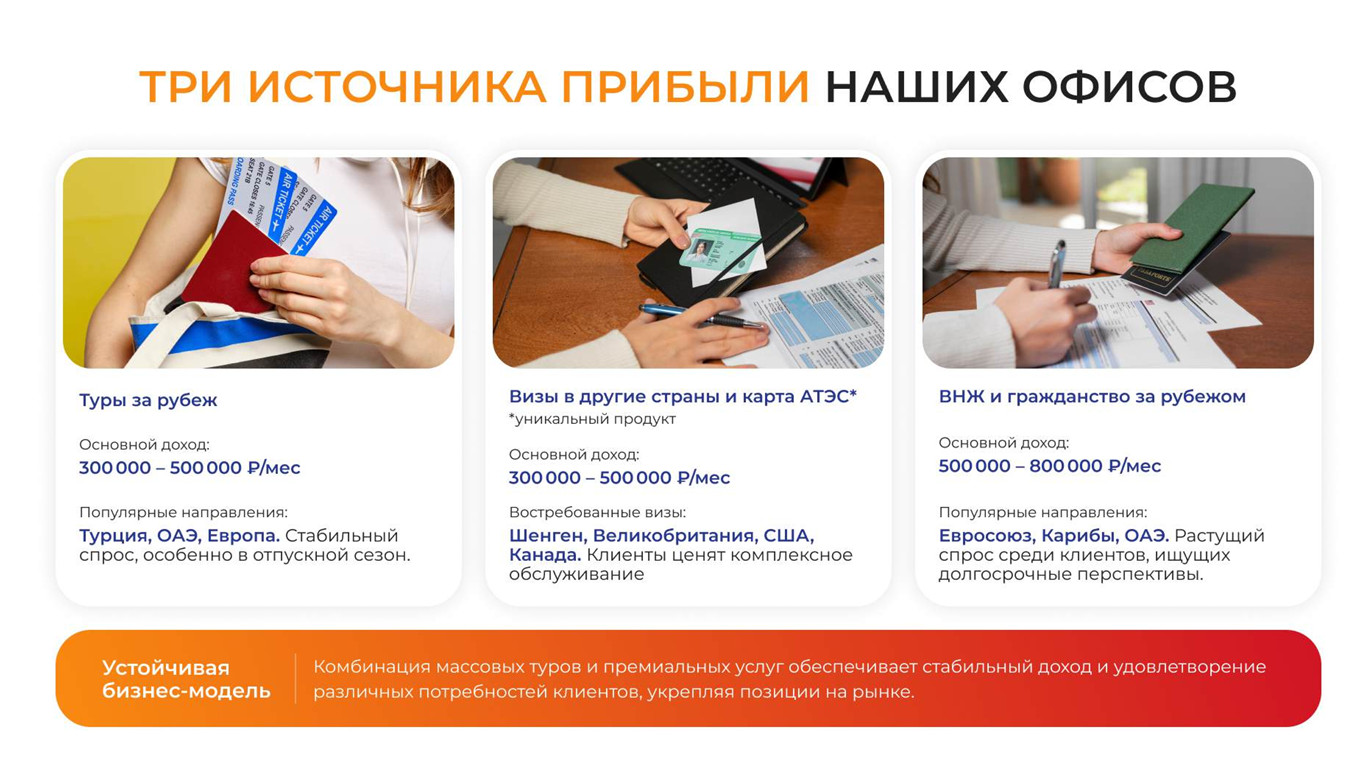 Знаете что произошло дальше? На второй неделе пришли первые горячие заявки от управляющей компании. Реальные люди, которые уже хотят купить! Не нужно было холодно обзванивать и упрашивать. CRM-система показывает всю историю клиента, готовые скрипты для разговора. Реальные франшиза Центр путешествий № 1 отзывы подтверждают мои цифры — не 2 миллиона, но сейчас мой офис делает 720-780 тысяч выручки. После всех расходов (аренда, зарплаты двум менеджерам, роялти) остается 210-240 тысяч чистыми. Не те 2 миллиона, что обещают в презентации, но для города с населением 500 тысяч — отлично. Самое прибыльное — программы ВНЖ и гражданства. Один клиент на гражданство ЕС приносит 400 тысяч выручки, из которых 150 тысяч — чистая маржа. Туры дают объем, но маржа там копеечная. Визы — золотая середина: 12 тысяч средний чек, половина остается тебе. Будем честны, не все радужно. Читая франшиза Центр путешествий № 1 отзывы перед покупкой, я не увидел упоминаний о сезонности — это было неприятным сюрпризом. Январь-февраль — мертвый сезон, выручка падает на 40%. Если не отложить подушку, можно влететь. Конкуренция жесткая: в нашем городе 5 визовых центров, все борются за клиента. И главное, нужно реально вникать в документы. Клиент с отказом по визе = потерянная репутация. Еще момент: обещанные горячие заявки есть, но их не сотни. В месяц приходит 15-20 готовых к покупке клиентов. Остальных нужно искать самому через рекламу, соцсети, сарафан. Если думаете, что купили франшизу и деньги потекут рекой — забудьте. Это пахота по 10-12 часов в день первые месяцы. Нужно разбираться в визовых режимах десятков стран, следить за изменениями, обучать менеджеров. Моя жена говорит, что я сплю с ноутбуком. Не подойдет тем, у кого нет минимум 200 тысяч сверх паушалки. Нужны деньги на аренду, зарплаты, рекламу на старте. И терпение — первая прибыль пошла только на третий месяц. Смотрю на бывших коллег по найму и понимаю, что сделал правильный выбор. Да, ответственность вся на мне. Да, бывают бессонные ночи. Но это МОЙ бизнес, который приносит в 3 раза больше прошлой зарплаты. Франшиза ЦП1 — рабочий инструмент. Если готовы пахать и учиться, получите результат. Если ищете пассивный доход, пройдите мимо. P.S. Кто уже работает с франшизами в туризме — поделитесь опытом в комментариях. Интересно сравнить показатели. P.P.S. Кстати, перед тем как вкладывать свои кровные в любую франшизу, загляните на сайт «Отзывы про франшизы». Ребята собирают реальные отзывы о франшизах и делают честный анализ. Знаете, сколько людей попалось на красивые презентации и потеряли последние деньги? Там разоблачают откровенных мошенников и помогают отличить нормальные компании от пустышек. Я сам перед покупкой ЦП1 перечитал весь их раздел по туристическим франшизам — сэкономил нервы и деньги, обойдя стороной пару сомнительных контор. Короче, лучше потратить вечер на чтение отзывов реальных людей, чем потом кусать локти и судиться за свои же деньги. Проверено на себе!