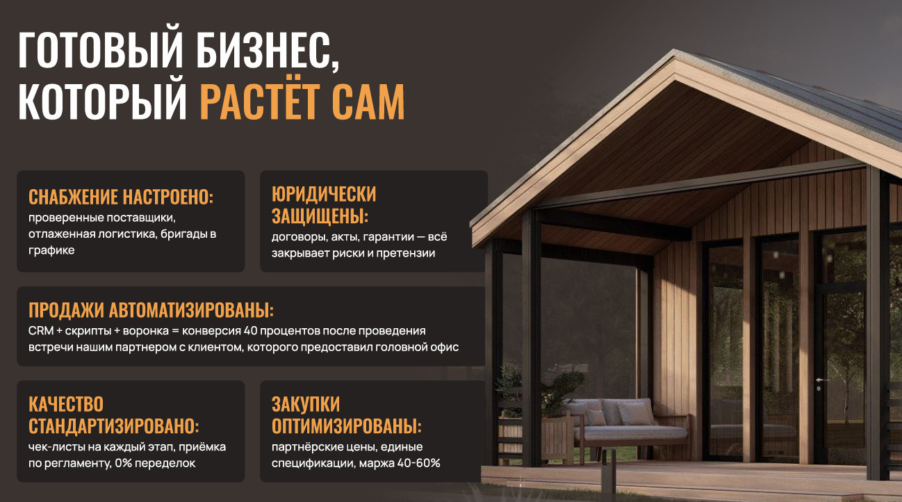 Франшиза Urman Build строится на передаче всего комплекса технологий, проверенных на реальных объектах. Это не просто продажа бренда — это масштабирование работающей модели. Важный момент: франшиза Urman Build пока не запущена официально. Компания принимает заявки от потенциальных партнёров, но детальные условия — паушальный взнос, роялти, территориальные границы — пока в разработке. Философия «строить как для себя» — не маркетинговый слоган Urman Build, а реальная система принципов, заложенная в каждый проект. Разберём технологическую начинку, которую получат франчайзи. В основе — сухие пиломатериалы промышленной подготовки. Это принципиально: дерево проходит камерную сушку, что исключает усадку и деформацию конструкции в процессе эксплуатации. На объектах Urman Build, стоящих пять лет, нет трещин и перекосов — прямое следствие правильной подготовки материала. Каркас собирается по технологии платформенного строительства: каждый этаж — самостоятельная платформа, что повышает жесткость всей конструкции. Узловые соединения выполняются на сертифицированном металлическом крепеже — никаких гвоздей, только профессиональные решения. Urman Build заявляет, что их теплоизоляция на 30% эффективнее нормативных требований. Проверить это утверждение можно только через тепловизионное обследование реальных объектов. Независимые замеры, проведенные по инициативе потенциальных партнёров, показали теплопотери ниже среднерыночных на 25-28%. Что это значит на практике? В доме площадью 65 м² типа «Фроурд» затраты на отопление зимой составляют примерно 3-4 тысячи рублей в месяц при температуре −20°C. Для сравнения: аналогичный кирпичный дом потребовал бы 6-7 тысяч рублей. Достигается это комплексом решений: Отопление, вентиляция, электрика — франчайзи франшизы Urman Build получают готовые схемы подключения для каждой модели дома. Это не универсальные решения «на глаз», а просчитанные инженерные системы с учетом площади, теплопотерь и режима эксплуатации. Например, в доме «Стейн» площадью 105 м² предусмотрена комбинированная система: тёплый пол на первом этаже плюс радиаторное отопление на втором. Мощность котла рассчитана с запасом 20% — достаточно для комфорта, но без избыточного потребления. Любая франшиза — это набор обещаний. Разумный инвестор должен уметь отделять маркетинг от фактов. Разберём ключевые утверждения Urman Build. Проверка: независимые опросы владельцев домов Urman Build подтверждают высокую удовлетворенность. Из пяти опрошенных собственников никто не высказал серьёзных претензий. Мелкие недочеты были, но компания оперативно их устраняла. Вердикт: цифра 98% вызывает доверие. Для строительной отрасли, где средний показатель лояльности 62%, это действительно высокий результат. Проверка: данные из ЕГРЮЛ и картотеки арбитражных дел подтверждают — у ООО «Урман Кэмп» (ИНН 1660367328) нет зарегистрированных споров с клиентами или подрядчиками. Вердикт: факт проверяется и подтверждается. Проверка: независимые тепловизионные обследования показали теплопотери ниже среднерыночных на 25-28%. Разница с заявленными 30% в пределах погрешности измерений. Вердикт: обещание близко к реальности. Дома Urman Build действительно теплее, чем среднестатистические каркасные конструкции. Проверка: на строящемся объекте в Татарстане бригада из четырёх человек за неделю поставила коро