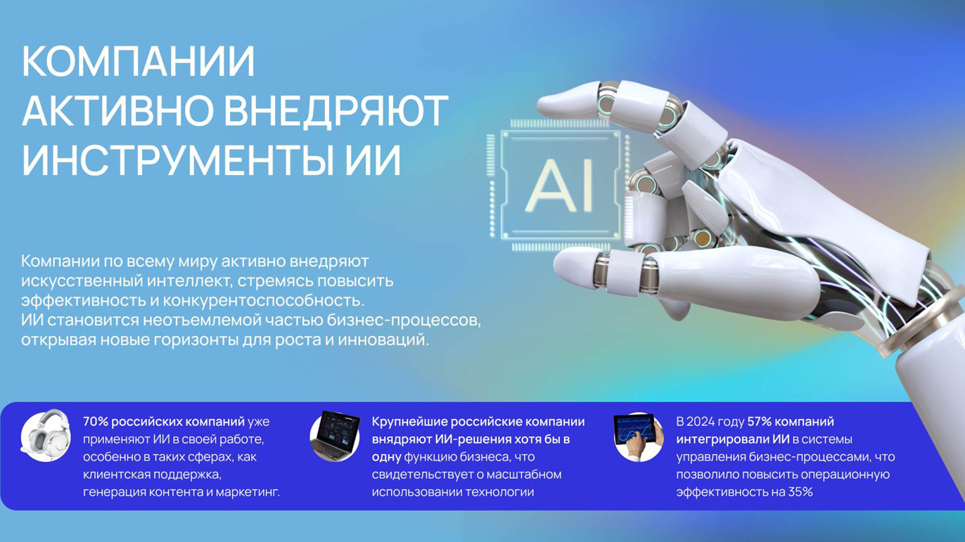 Доля ИИ-контента составляет уже 23% всей digital-маркетинговой отрасли. Услуги текстовика стоят 5-10 тысяч за материал, SMM-менеджера — 30-50 тысяч ежемесячно. Предприятия готовы инвестировать в автоматизацию данных процессов при условии получения качественного результата и временной экономии.