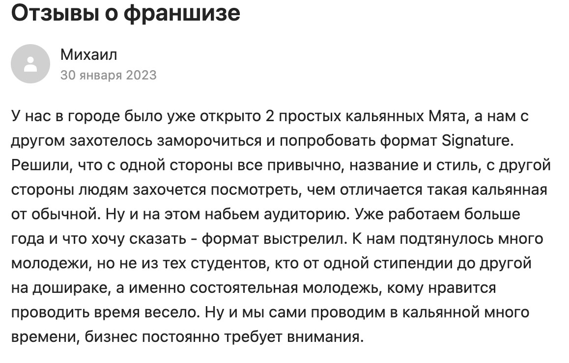 Франшиза Мята Lounge отзывы: что реально дают в поддержке, кроме чатов и брендбука