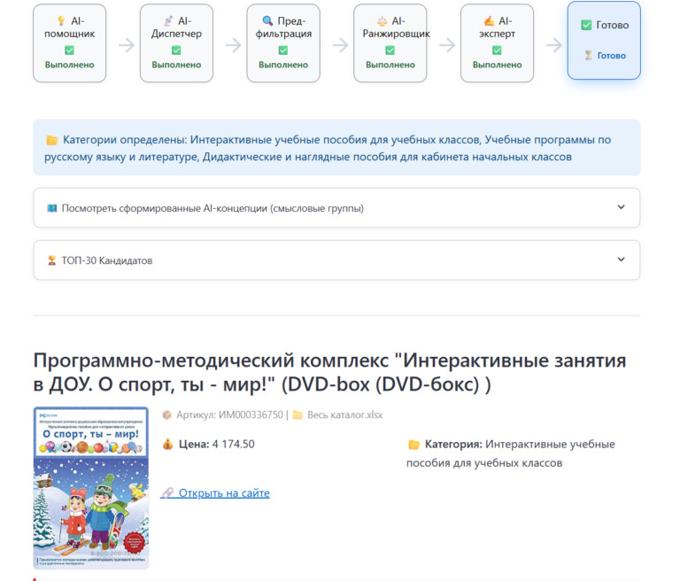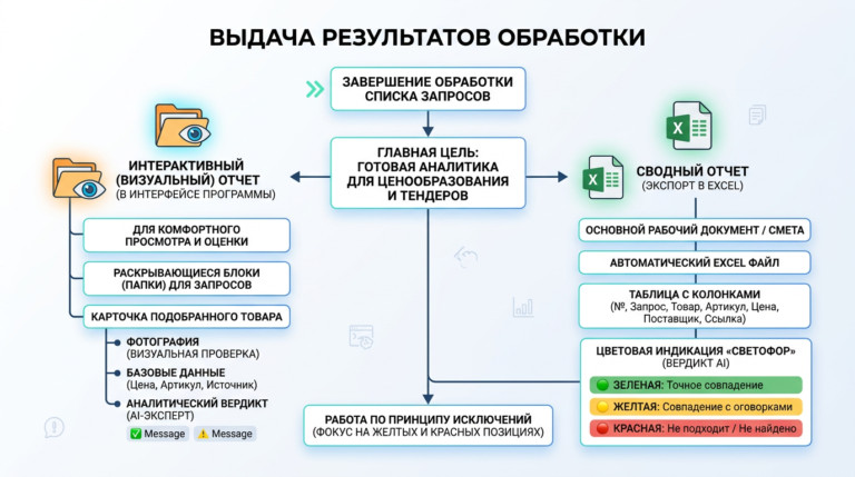 Чтобы ИИ искал точно, ему нужна структурированная база. Если у компании есть выгрузки из 1С, CSV или готовые прайсы в Excel — проблема решается простой загрузкой в нужную директорию. Но на практике прайс-листы есть не всегда. Часто товары представлены только в веб-каталоге производителя. Писать кастомный парсер под каждый сайт — утопия. Поэтому в систему пришлось интегрировать модуль автоматического сбора данных. Как это работает сейчас: Обычный полнотекстовый или даже векторный поиск здесь пасует. В тендерном ТЗ слишком много «мусорных» слов, которые сбивают алгоритм. Поэтому сопоставление требований заказчика с доступным ассортиментом я реализовал через многоступенчатый конвейер. Вот как выглядит флоу обработки одной позиции: Чтобы инструмент был применим в реальном бизнесе, я разделил логику интерфейса на два сценария. Режим 1: Точечный подбор (Одиночный поиск)Идеально для сложных, единичных запросов. Пользователь не вычленяет слова, он просто копирует весь огромный абзац из документации и вставляет в поиск. Можно задать фильтр источников (например, искать совпадения только в каталоге конкретного завода). Система выдает карточку лучшего кандидата. Режим 2: Пакетная обработка (Batch-режим)Основная «киллер-фича» для снабженцев. Специалист загружает в систему файл со сметой (десятки или сотни строк). Программа считывает колонку с требованиями и выстраивает очередь. Дальше процесс идет полностью в фоне. На глубокий машинный анализ одной сложной позиции уходит около минуты. Пока программа автономно перебирает базы и сопоставляет характеристики, человек может вести переговоры или заниматься другими задачами. Я понимал, что выдавать просто «сырые» ссылки на совпадения — бессмысленно. Цель B2B-продукта — дать готовую аналитику для принятия решений. В интерфейсе результаты группируются по папкам: исходная строка ТЗ → раскрывающийся блок с товарами-кандидатами. Подтягиваются фотографии с сайтов доноров, цены и артикулы. Но главное происходит при экспорте. Итоговым продуктом работы программы является сводная таблица Excel. И здесь я внедрил цветовую индикацию (систему «Светофор»), основанную на выводах AI-Эксперта: Такой подход меняет парадигму работы: человек больше не ищет товары, он работает по принципу исключений, проверяя только «желтые» спорные позиции. Помимо первичного просчета тендеров (когда нужно за час понять маржинальность спецификации на 70 пунктов), архитектура отлично решает еще две задачи: Внедрение AI-пайплайна превращает задачу, на которую раньше уходили дни механической работы, в фоновый процесс на пару часов. Человеческий фактор (усталость, потеря концентрации) сводится к минимуму. Сейчас проект активно развивается. Если вы работаете в закупках, тендерах, оптовых продажах, или вам просто интересно обсудить архитектуру LLM-решений для B2B и протестировать инструмент на своих базах данных — буду рад пообщаться.
