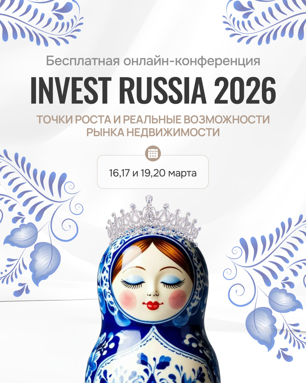 ✔️ С 16 по 20 марта на онлайн конференции «Инвестиции в недвижимость в 2026: точки роста и реальные возможности» я и моя команда расскажем как создавать и растить капитала в этом году, какие есть возможности и как сделать так, чтобы время было на вашей стороне