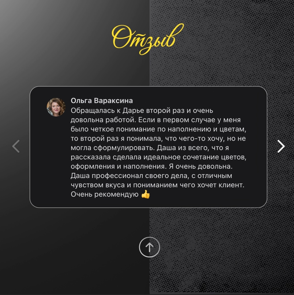 А вот отзыв Ольги о нашей совместной работе. Я хоть и не сахар 🍦, но просто таю от таких слов ❤️