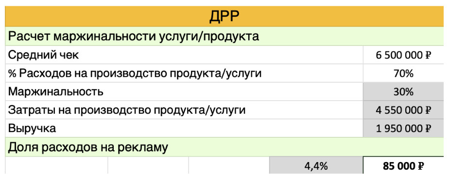 В первую очередь мы прописали, сколько денег мы можем тратить на достижение промежуточных маркетинговых целей: