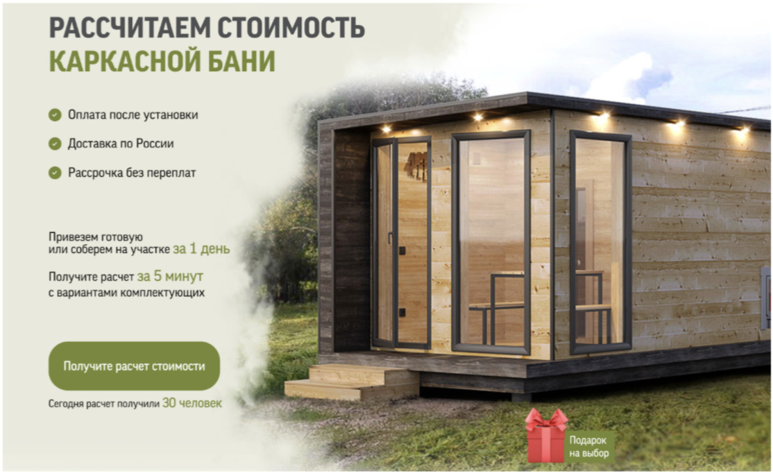 Клиент — компания, которая занимается строительством и установкой каркасных бань. Главная цель — продажи.