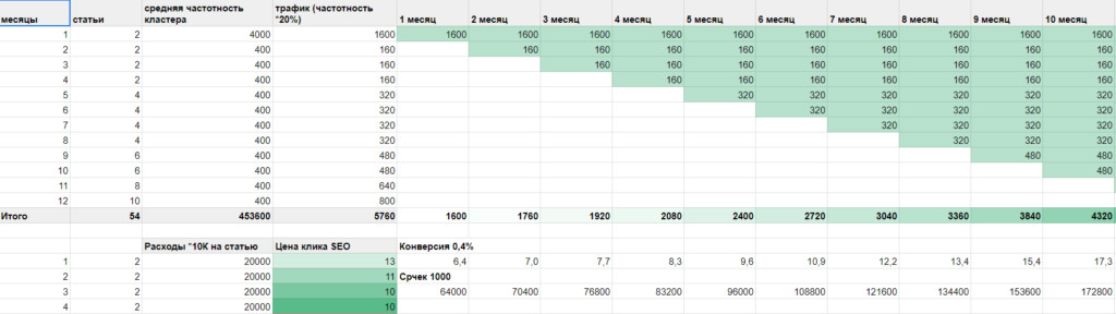 Другой вариант — вложиться с самого начала. Писать первые два месяца очень много материалов. Да, вы сначала уйдете в минус, но постепенно материалы окупятся за счет накопительного эффекта.