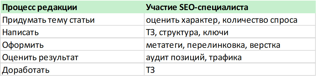 Как сработала стратегия. Трафик вырос в среднем на 50%, а «горячих» квалифицированных лидов с SEO стало на 20% больше. Когда вы только запускаете блог, анализ спроса помогает понять, нужен ли вообще контентный проект под услугу или продукт. Когда блог есть, анализ спроса помогает расширить контентную воронку. С помощью Вордстата вы найдете темы, которые соберут для вас аудиторию разной степени «прогрева»: от тех, кто только осознает проблему, до тех, кто уже готов что-то купить. Чтобы оценить спрос для SEO, заходим в Вордстат и ищем все, что связано с продуктом или услугой. Сначала проверяем, насколько большой объем спроса у нас есть — как часто ищут продукт в целом. А потом смотрим, как воспринимают наш товар или услуги люди, на какие категории делят. Анализируйте и общие запросы (высокочастотные), и более специфические (низкочастотные) и редкие запросы, чтобы не упустить аудиторию. На основании поисковых запросов можно составлять SEO-прогноз. Адекватный прогноз позволяет правильно поставить цели и оценить рентабельность поискового трафика. Я рекомендую как минимум прописать на несколько месяцев цели по трафику. Еще лучше, но сложнее, — цели по лидам. Отслеживайте результаты и сверяйтесь с плановыми в разрезе одного месяца, квартала, полугода. Это поможет понять, приходите вы к целевым показателям или нет. Если нет, нужно корректировать стратегию и тестировать новые гипотезы. Пример прогноза по SEO-трафику с окупаемостью контента: Чтобы получить примерный прогноз посещаемости по ключевой фразе, вбиваем наш запрос в Вордстат в кавычках — так мы увидим спрос по этой конкретной фразе без «хвостов» и дополнений. Число показов в месяц умножаем на два, потому что основных источников трафика в поиске у нас два — Гугл и Яндекс. Получится приблизительный объем аудитории, которой интересна тема. Если вы находитесь в топ-3 в выдаче, то забираете 10-20% этого трафика. Всё, что ниже до 5-6 позиции — около 2-3%. Такой нехитрый подсчет показывает, сколько читателей вы примерно можете получить. У редакции и сеошника одна цель — трафик. Чтобы ее достичь, нужно делиться информацией и обсуждать процессы. Например, Илья Карбышев как SEO-специалист помогает редакции разрабатывать контент-планы — формирует список тем, которые интересны читателям, анализирует выдачу и то, как формируется запрос пользователя. Когда автор сядет писать статью, у него под рукой будут объективные данные пользовательского спроса, а не только профессиональное чутье. Обычно статьи, основанные на данных, выстреливают лучше. SEO ТЗ для статей — главная причина конфликта редакции и сеошника. Чтобы его избежать, ТЗ нужно составлять адекватно: без 300 ключевых слов, требования к уникальности, тошнотности, водности, спамности. В современном SEO я использую другой подход. Такое ТЗ рассчитано на копирайтера, который готов делать качественный контент. Я просто помогаю адаптировать текст под SEO, чтобы он дополнительно собирал трафик. Целевое действие — то, чего мы хотим от читателей. Чтобы подписывались на рассылку, узнавали про наши услуги, оставляли заявки, покупали. Если на целевое действие и конверсию не обращать внимания, то получится, что контент производится ради контента. Пример рабочего целевого действия — в журнале «Кинжал». В каждой статье встроены плашки, которые переводят читателей на са
