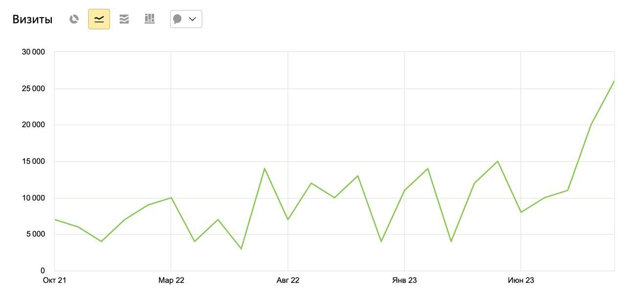 Компания помогает бизнесу с управленческим учетом, предоставляет услуги аутсорсинга финансовых директоров. У компании есть Газета — бренд-медиа, где много материалов. До начала 2023 года по трафику была стагнация — они регулярно выпускали статьи, но цифры оставались на месте.
