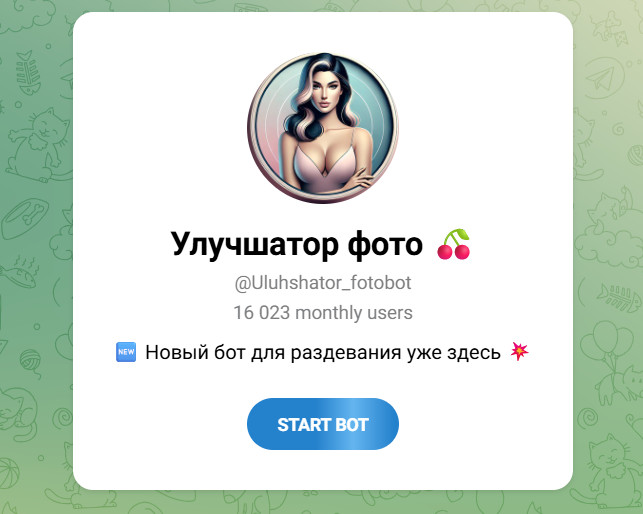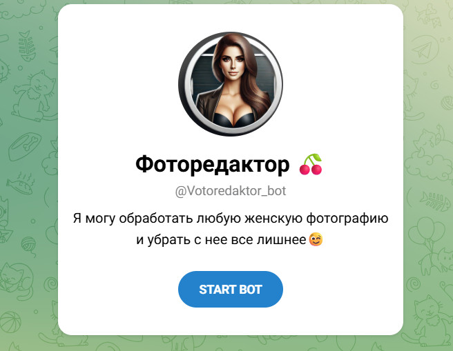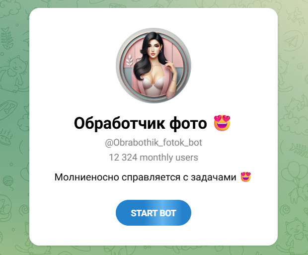 1. Раздеть девушку по фото — мощный бот для раздевания девушек, создаёт качественные реалистичные изображения, работает через нейросеть, без размытия. Отлично справляется с детализацией и освещением.