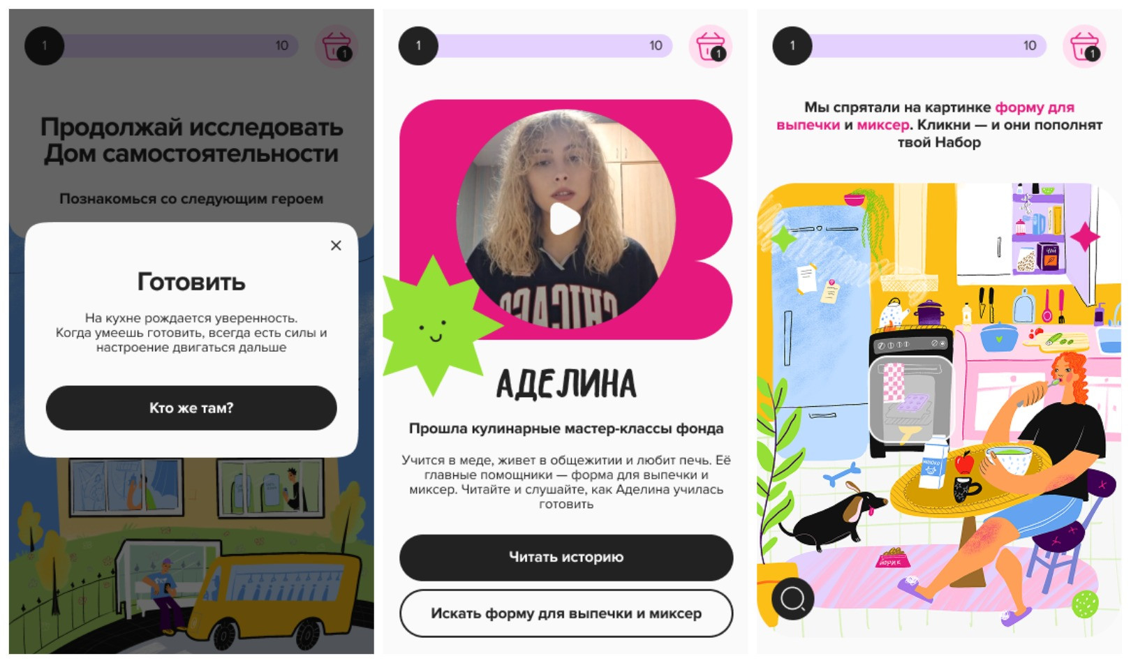 На локациях спрятаны вещи, которые помогают подросткам в быту, учебе или на работе. Пользователю предстоит найти десять предметов, вместе они составляют набор самостоятельности. У каждой вещи есть цена: от 200 до 5000 рублей. По мере поиска предметы попадают в корзину, из их стоимости формируется сумма пожертвования — ее можно корректировать. Игра вызывает больше эмоций, чем безликая оплата по реквизитам. Пользователь не просто читает или смотрит чужую историю, а будто проживает ее вместе с подростками. Благодаря этому он оказывается ближе к героям, а пожертвование воспринимается не как абстракция, а как реальная и конкретная поддержка ребят. Поиск предметов не остается только игровым квестом, с каждой локацией усиливается сопричастность к процессу взросления подопечных фонда. Все найденные предметы логично вписываются в историю подростка: миксер нужен для готовки, а фотоаппарат — для работы. У всех предметов указана цена, но намного важнее их ценность: то, как финансовая помощь превращается в полезные навыки, а социально уязвимые подростки — в уверенных молодых взрослых. Игра уже месяц работает на сайте фонда — за это время ее прошли более 18 000 человек. Пользователи знакомятся с историями подростков, собирают для них набор самостоятельности и оформляют пожертвования. Рассказывать о добрых делах приятно, поэтому игроки делятся игрой в соцсетях. Так другие люди вдохновляются их опытом и тоже приходят поддержать проект.