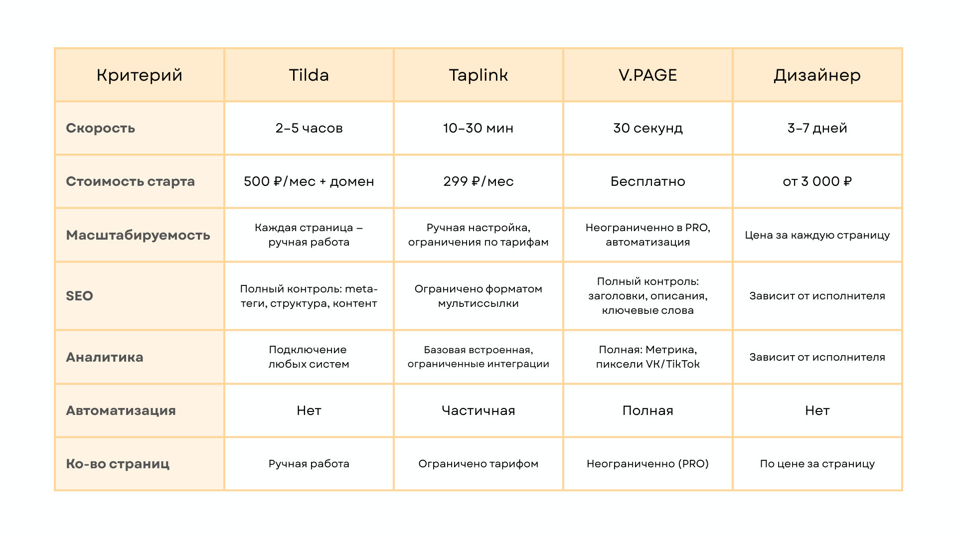 Итого: Бесплатно (базовая версия) или 990 ₽/мес (PRO)Масштабируемость: Очень высокая (автоматизация, неограниченное количество страниц)