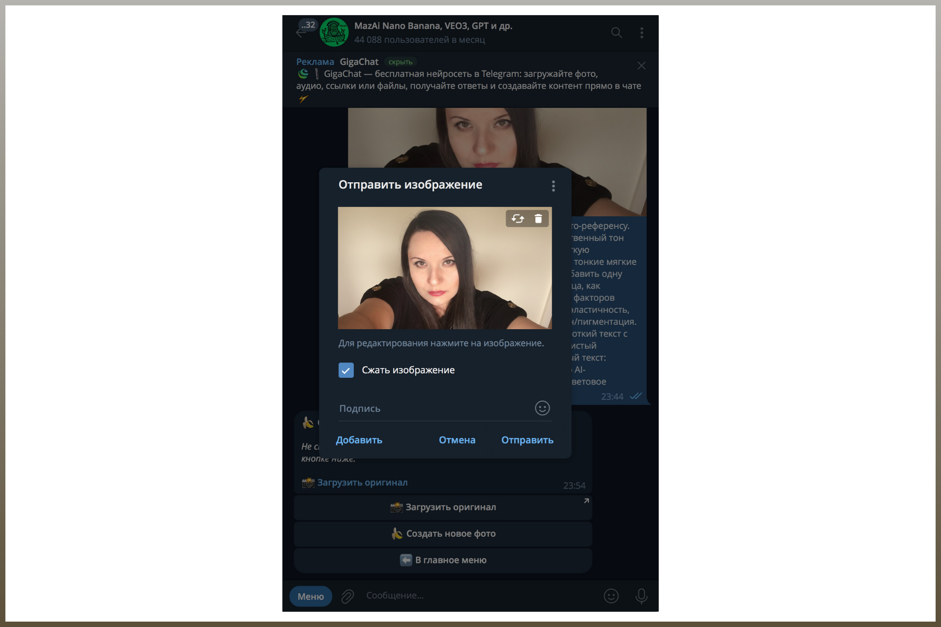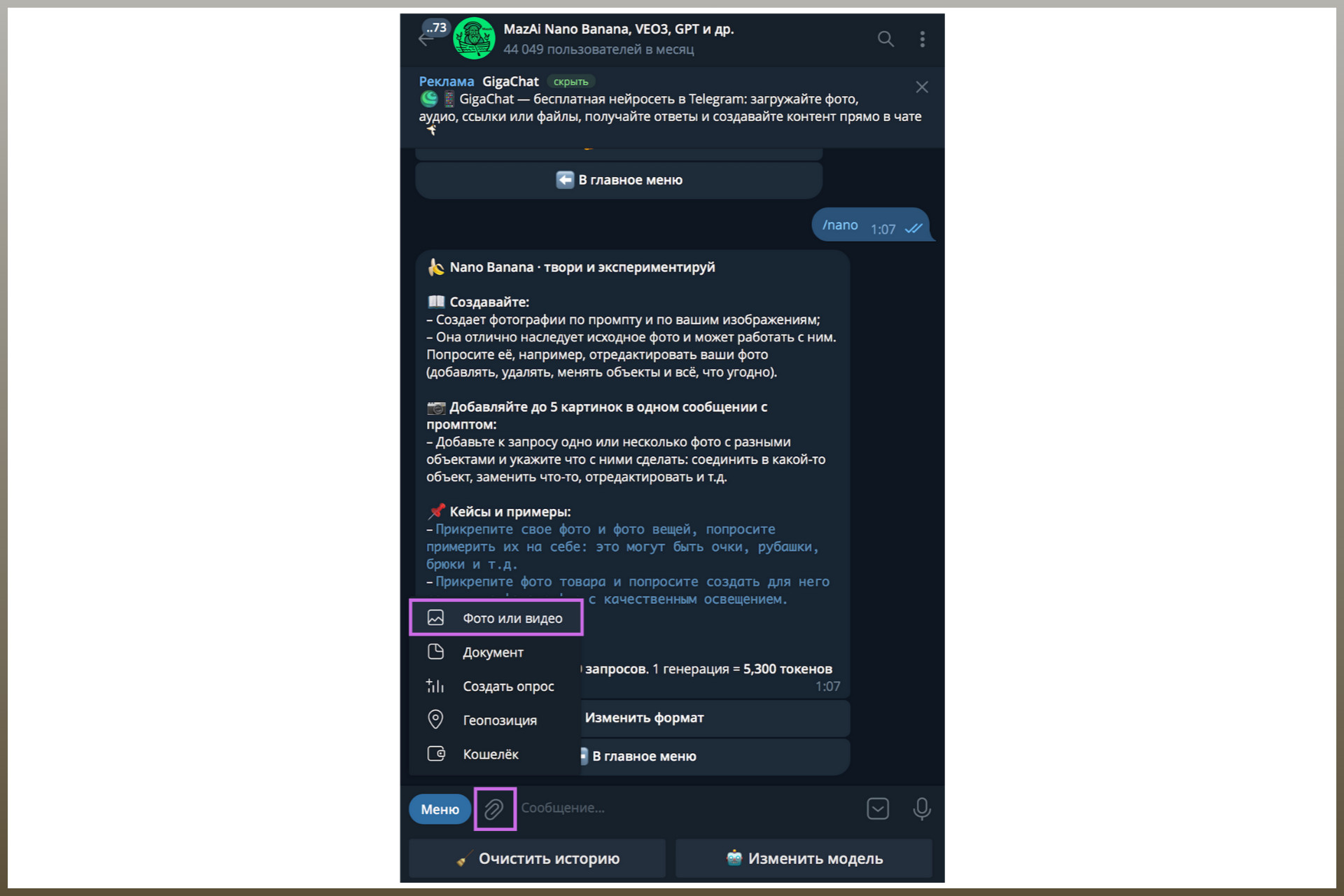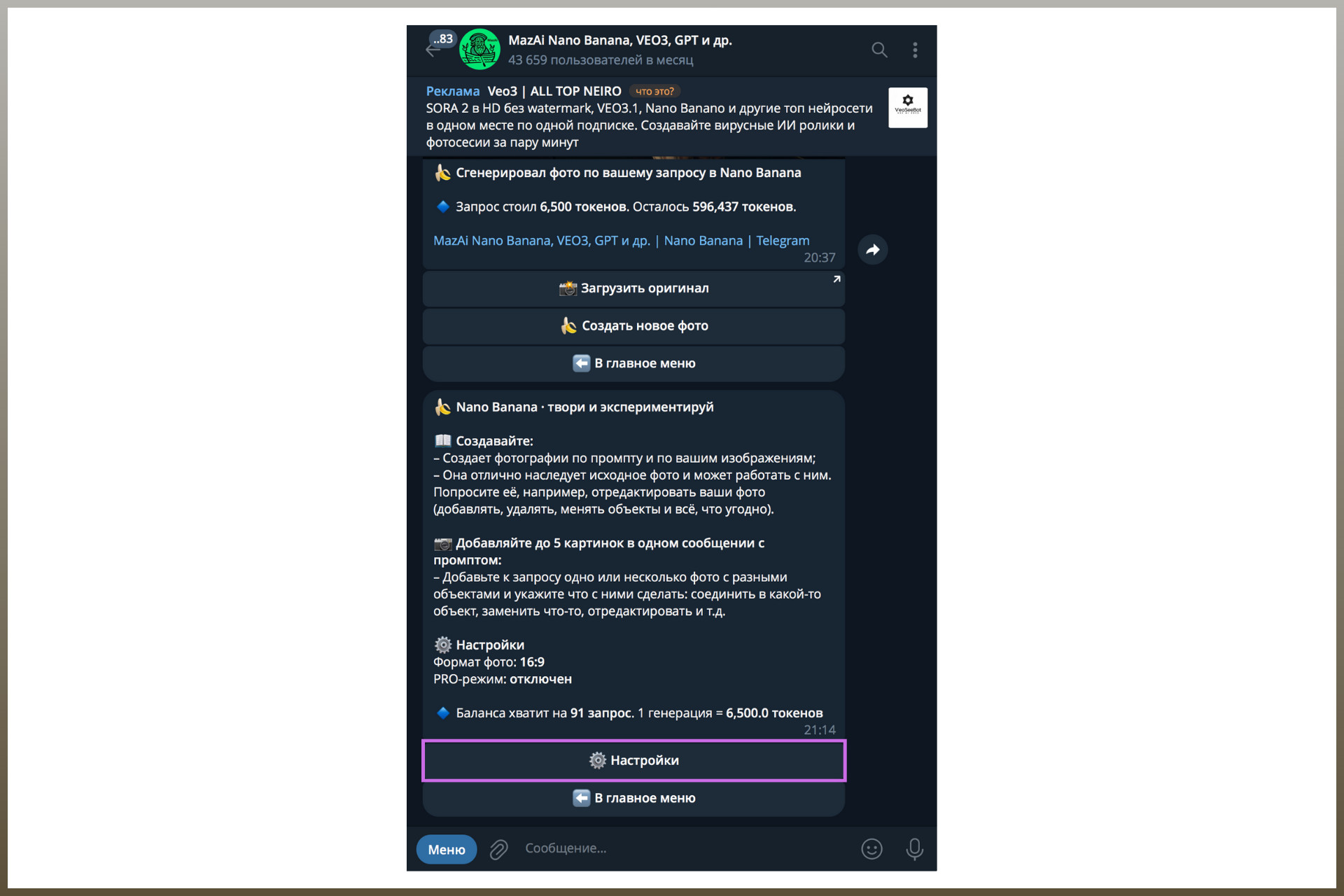 Важно: бесплатные стартовые генерации в ботах распространяются только на ИИ-модель Nano Banana (предыдущую версию). Она тоже подойдет для наших целей, но результат будет в разы лучше, если запустить Nano Banana PRO.