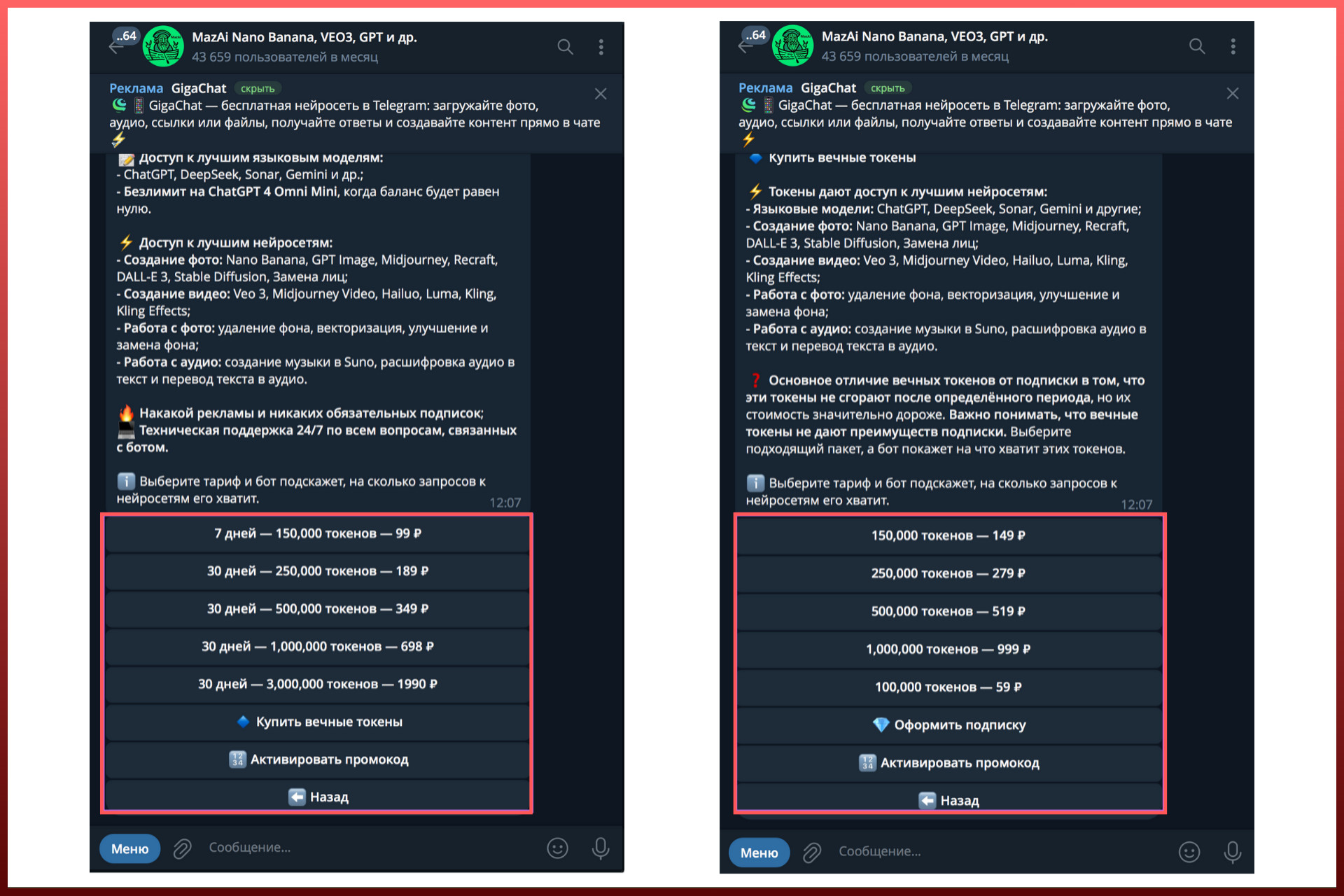 В этом телеграм-боте (ссылка) есть подписка за 99 ₽. Оплатить можно с российской карты и через Telegram Stars. На балансе появится 150 000 токенов + 10 000 токенов бонусом, если вы новый пользователь. Этого хватит на 4 генерации в Nano Banana PRO. То есть, один снимок обойдется всего в 25,74 ₽.