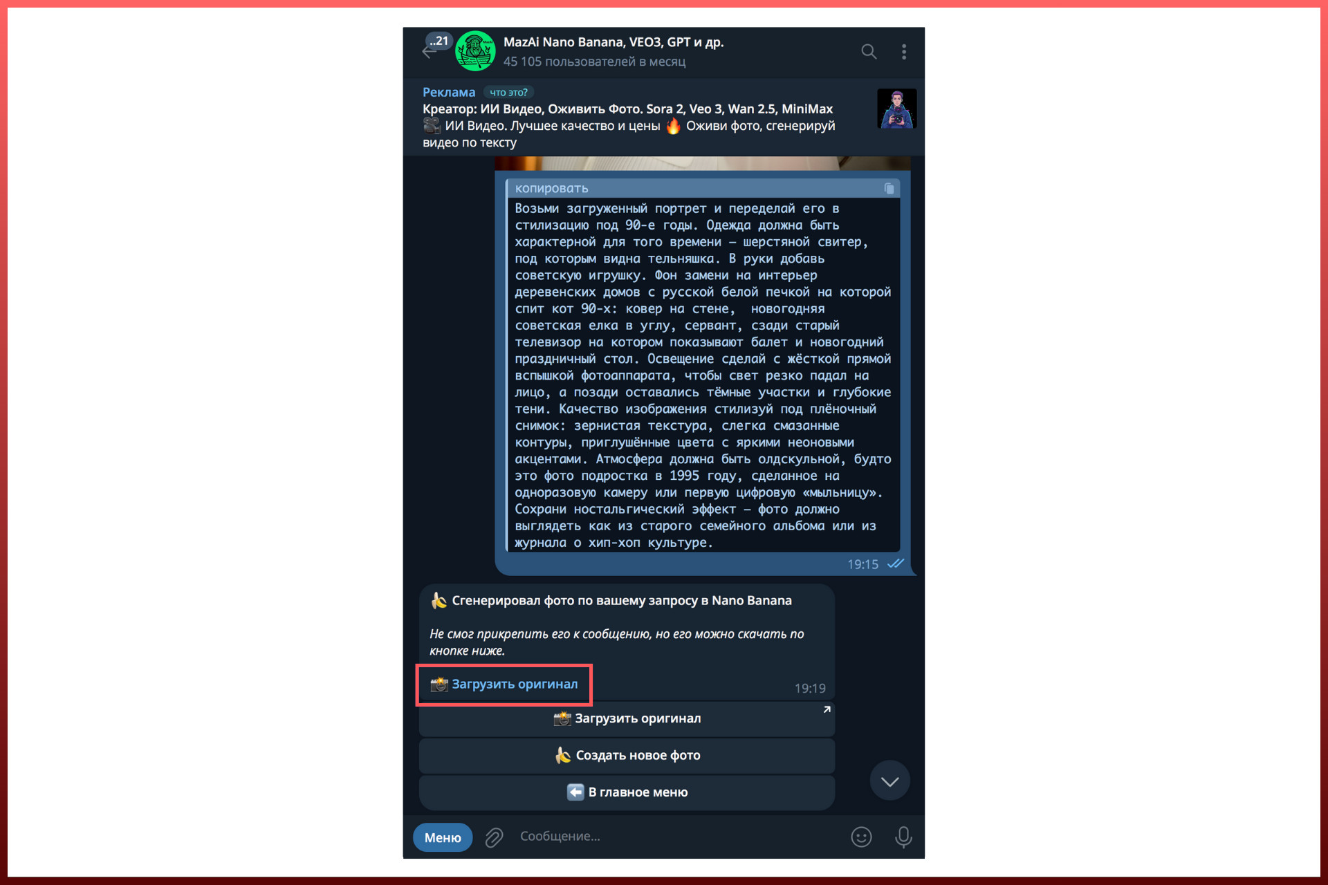 Google представил ИИ-модель Nano Banana PRO совсем недавно — 20 ноября 2025 года. И не все разработчики успели интегрировать ее в телеграм-боты. А значит, большинство ваших знакомых будет пользоваться менее совершенной нейросетью для генерации новогодних снимков.
