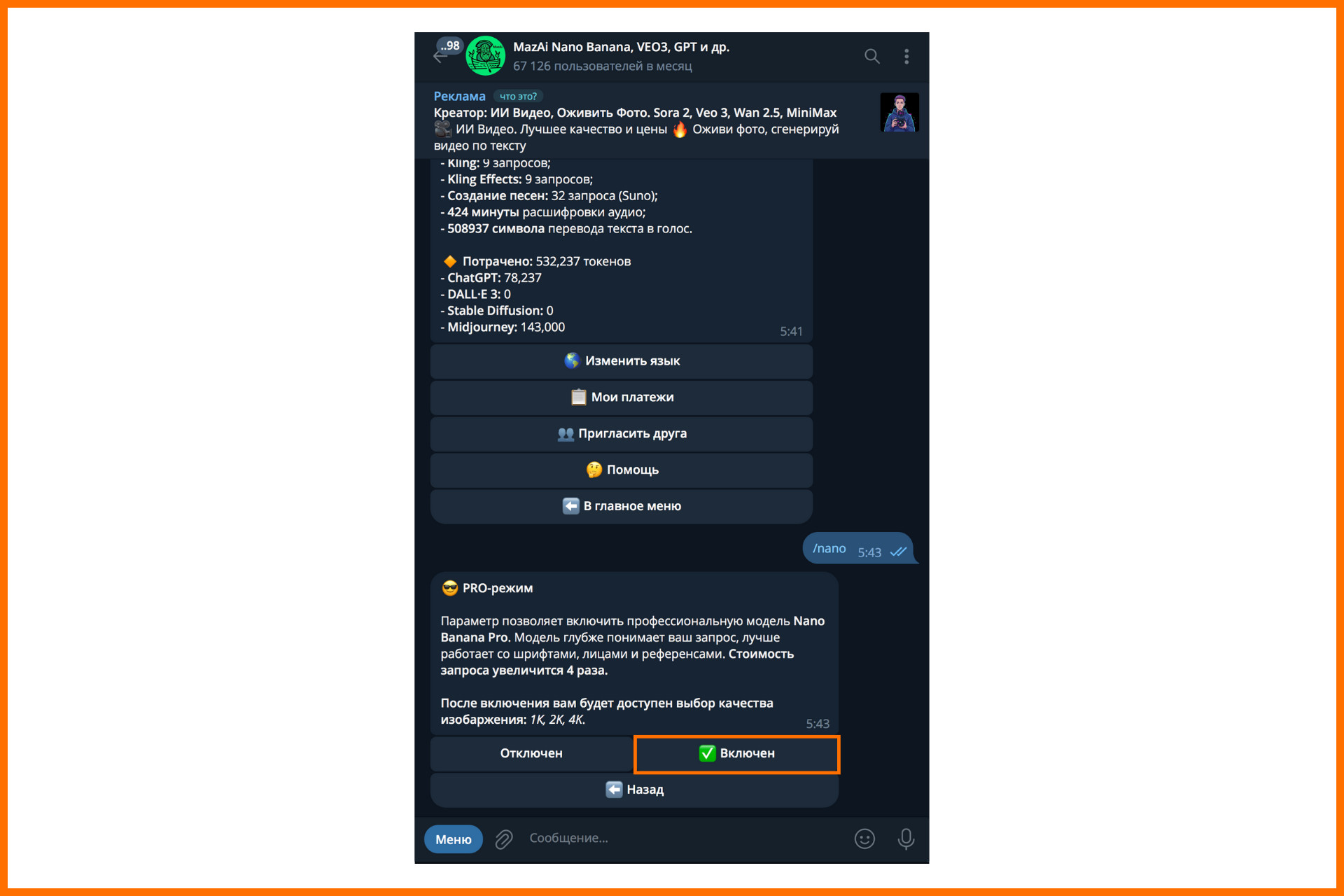 Тем более что сегодня для этого не нужны технические ухищрения: популярная модель Nano Banana от Google работает без VPN, иностранных номеров телефонов и зарубежных банковских карт, если использовать телеграм-боты, подключенные напрямую к официальному сайту нейросети по API.