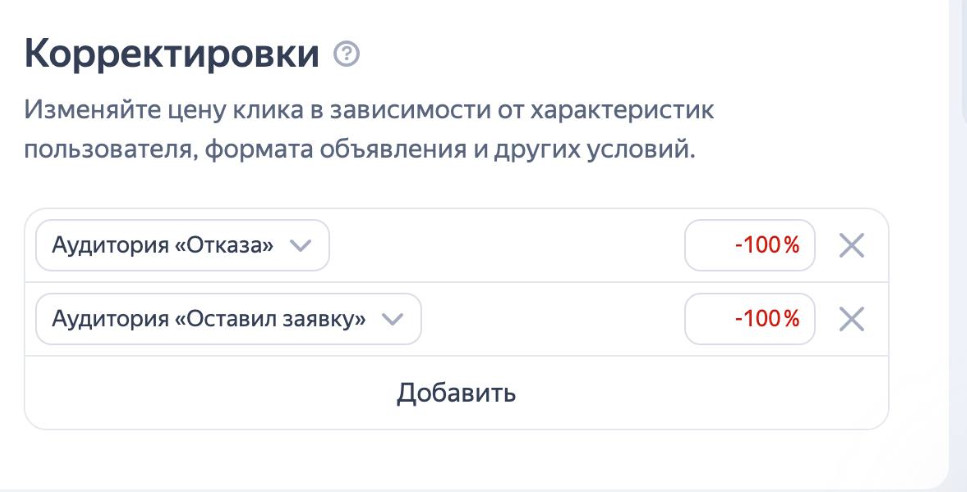 С ВК я аудиторию не беру — нет смысла, потому что сам Яндекс показывает рекламу и на внешних площадках, включая ВКонтакте, Одноклассники и даже Авито. То есть, по сути, я догоняю человека не только внутри Яндекса, но и где бы он ни был.