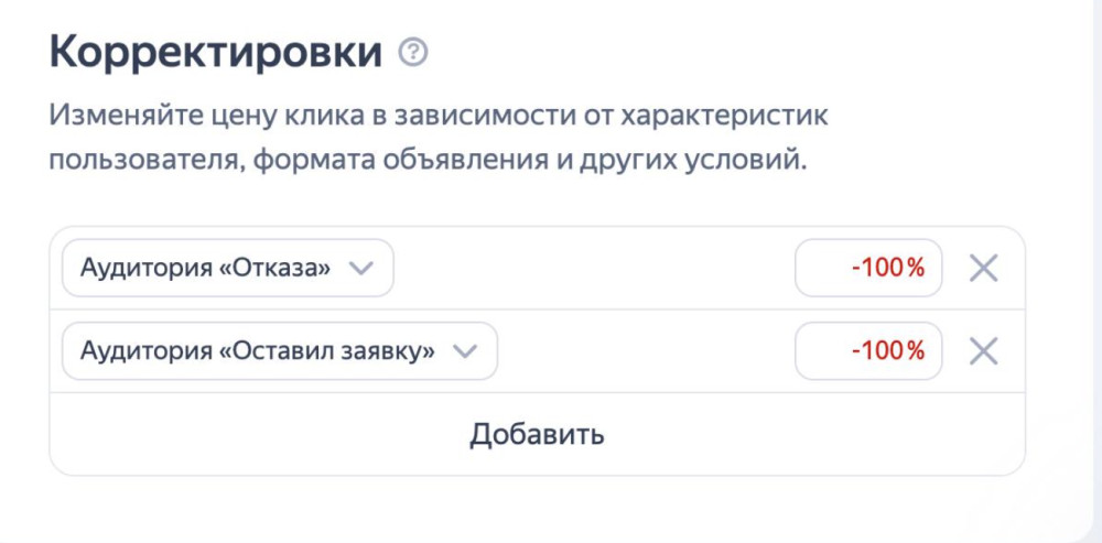 С ВК я аудиторию не беру — нет смысла, потому что сам Яндекс показывает рекламу и на внешних площадках, включая ВКонтакте, Одноклассники и даже Авито. То есть, по сути, я догоняю человека не только внутри Яндекса, но и где бы он ни был.